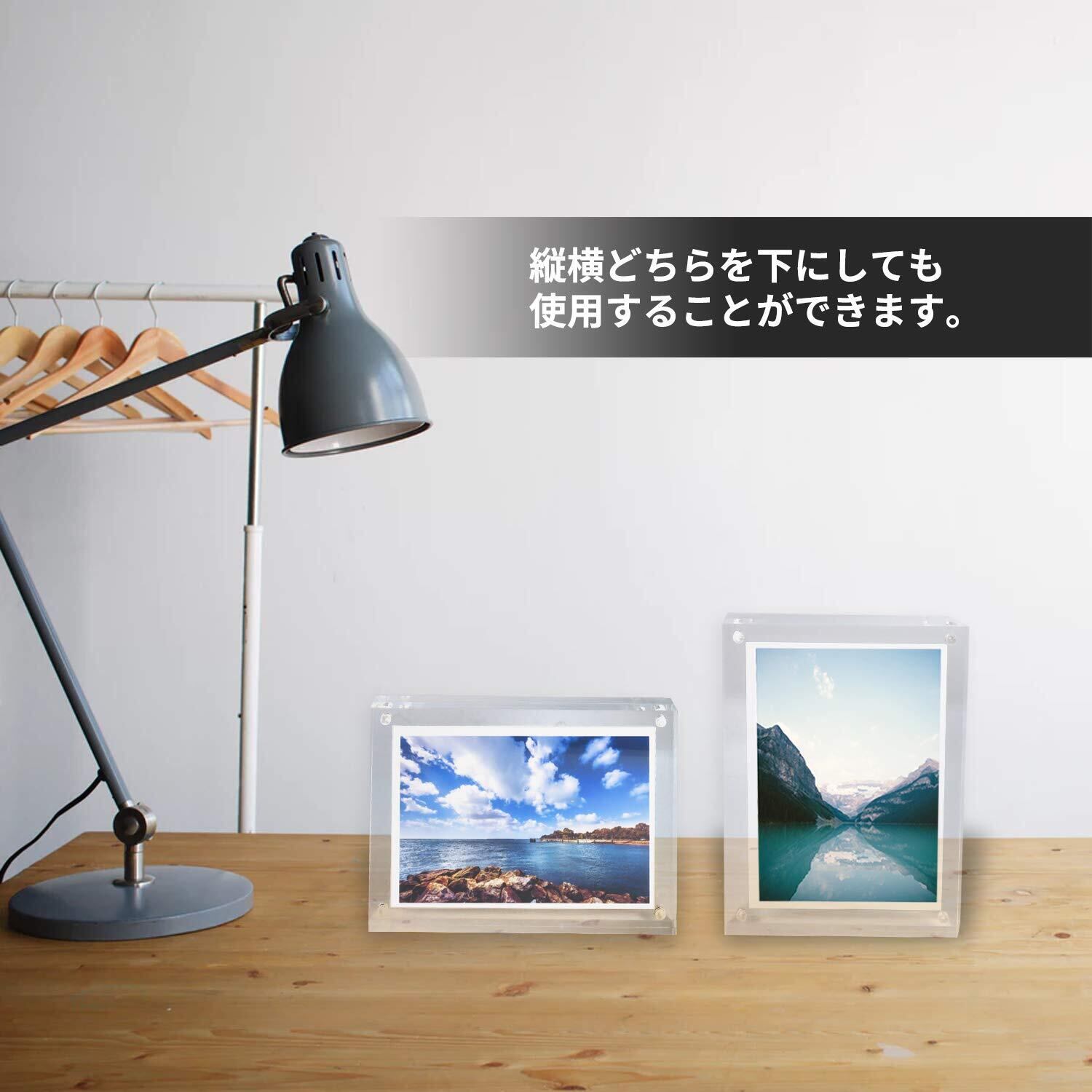 【多様な使用用途】家族写真や記念写真はもちろん、ネットプリントしたイラストやカレンダー、カードなどお気に入りの1枚をきれいに飾ることができます。また、両面透明で縦・横置き兼用なので、様々なコーディネートが可能です。