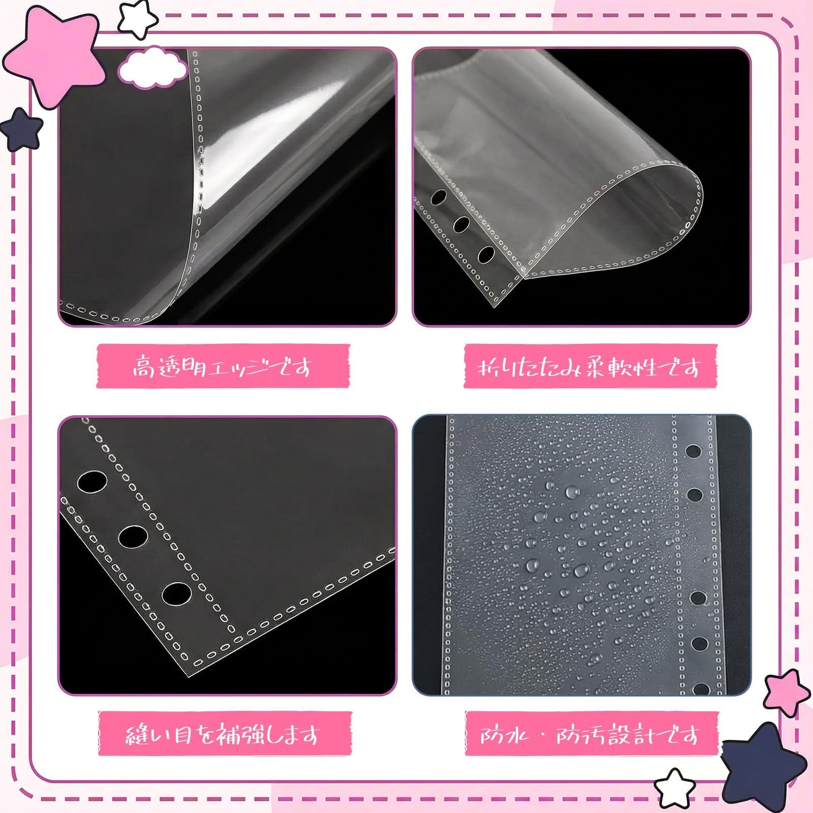 20枚入り A6 リフィル シール台紙 6穴 収納ポケット 紙幣/フォトカード 両用 透明 PP素材 横開き 両面3層収納 フォトカード アルバム用インサート 交換用ポケット旅行小物整理