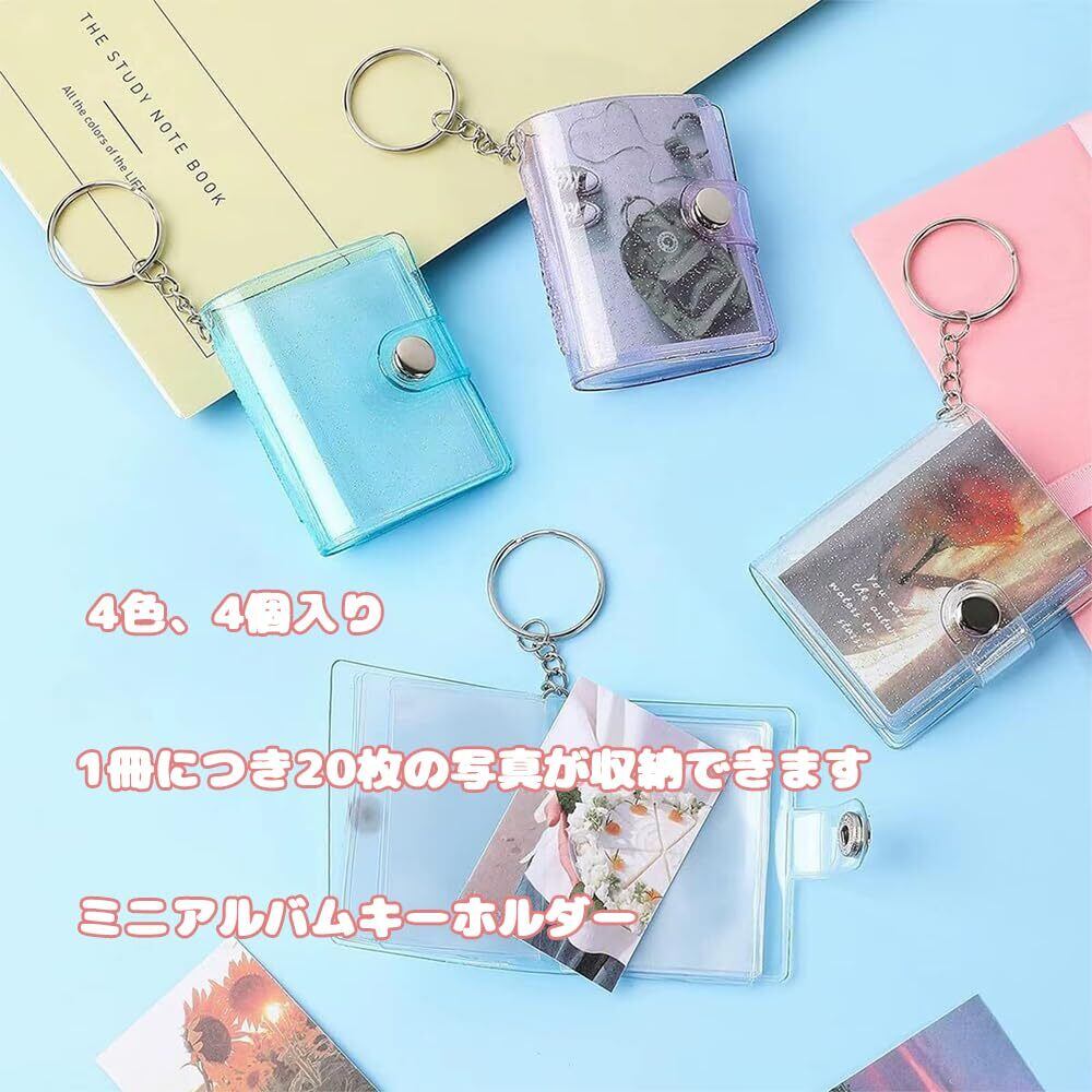 フォトアルバム ミニアルバム 【4個セット】 小さく 透明 軽量 ミニシール帳 ミニ フォトアルバムキーホルダー 子供 学生向け カップル ギフト 卒業記念 結婚式 誕生日 記念日 思い出記録