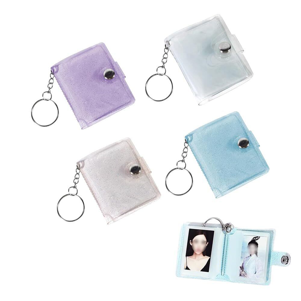フォトアルバムキーチェーン ミニ 2インチ 4冊 80枚 ミニシール帳 防水 透明 持ち運び便利 写真収納 結婚記念日 誕生日 贈り物 (透明)