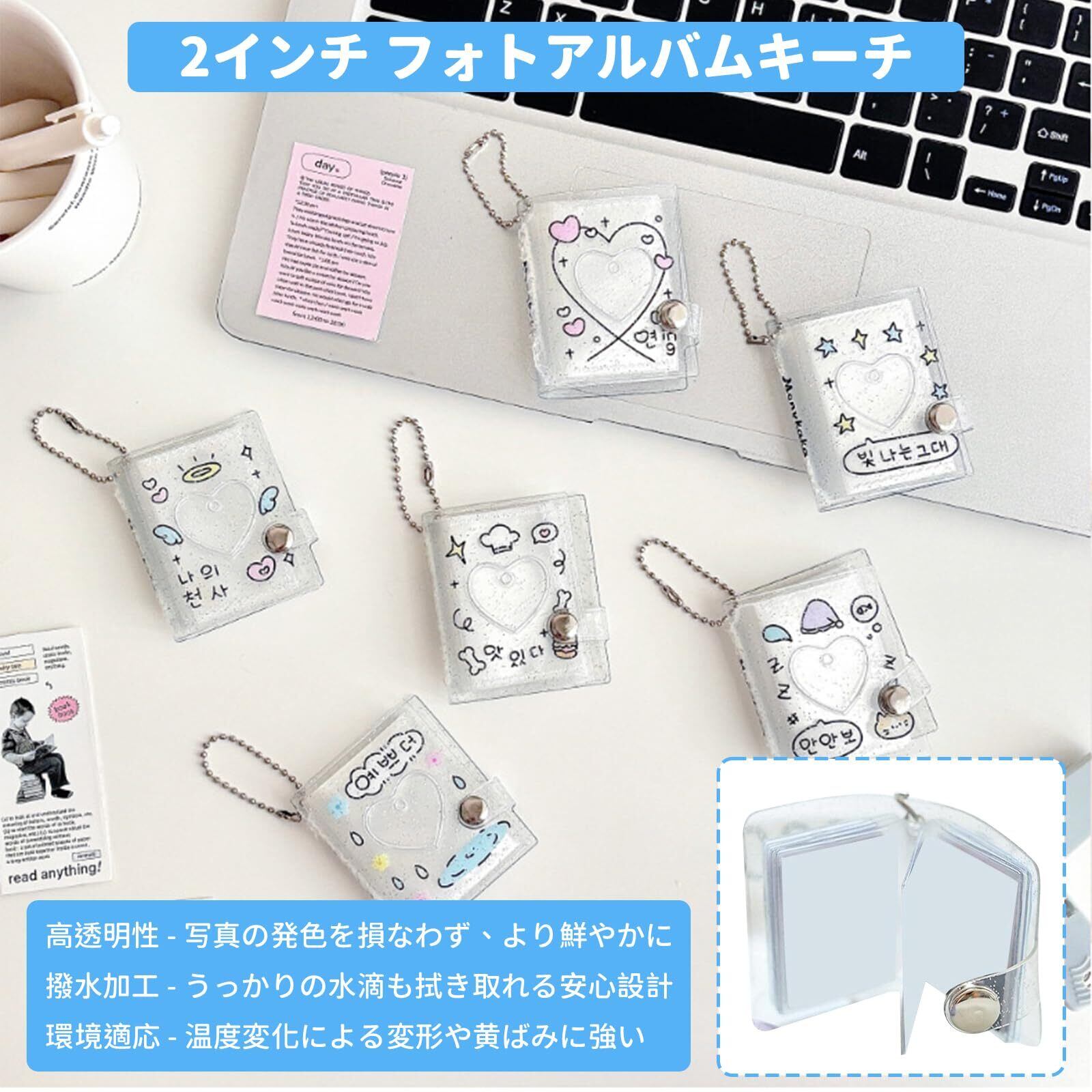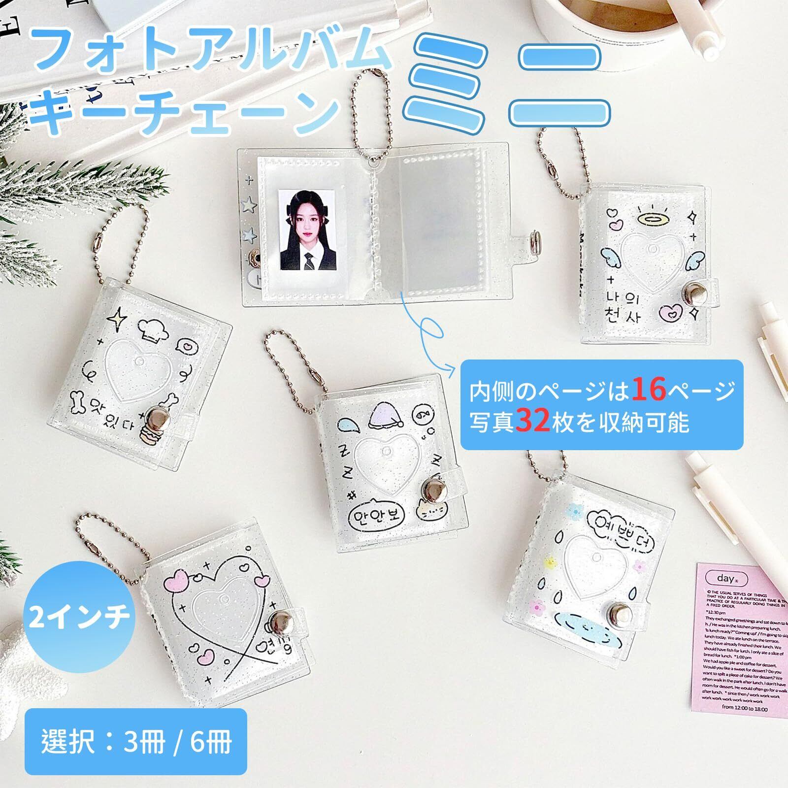 [aninako] ミニアルバムキーホルダー 3/6冊 48/96枚 両面収納 2インチ ミニシール帳 キーホルダー 落書きスタイル 小さく 透明 防水 持ち運び便利 写真ストレージ 推し活 バッグドライバー 誕生日 記念日 プレゼント