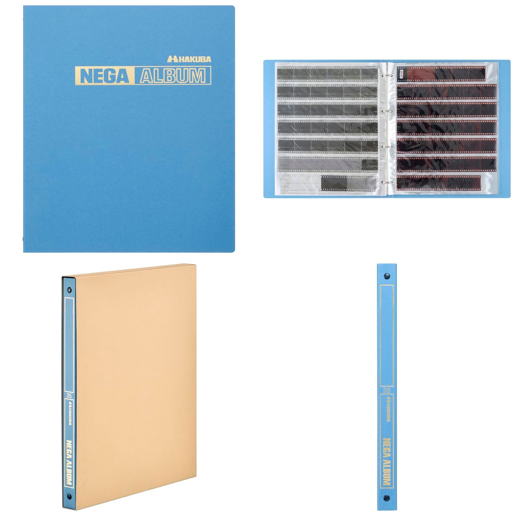 ハクバ (HAKUBA) フィルム用アルバム ネガアルバム 35mm用 (30シート入) ブルー バインダー式で台紙の差し替えが可能なフィルム用ネガアルバム サックケース付 4穴バインダー対応 ANG-35BL 4977187523782