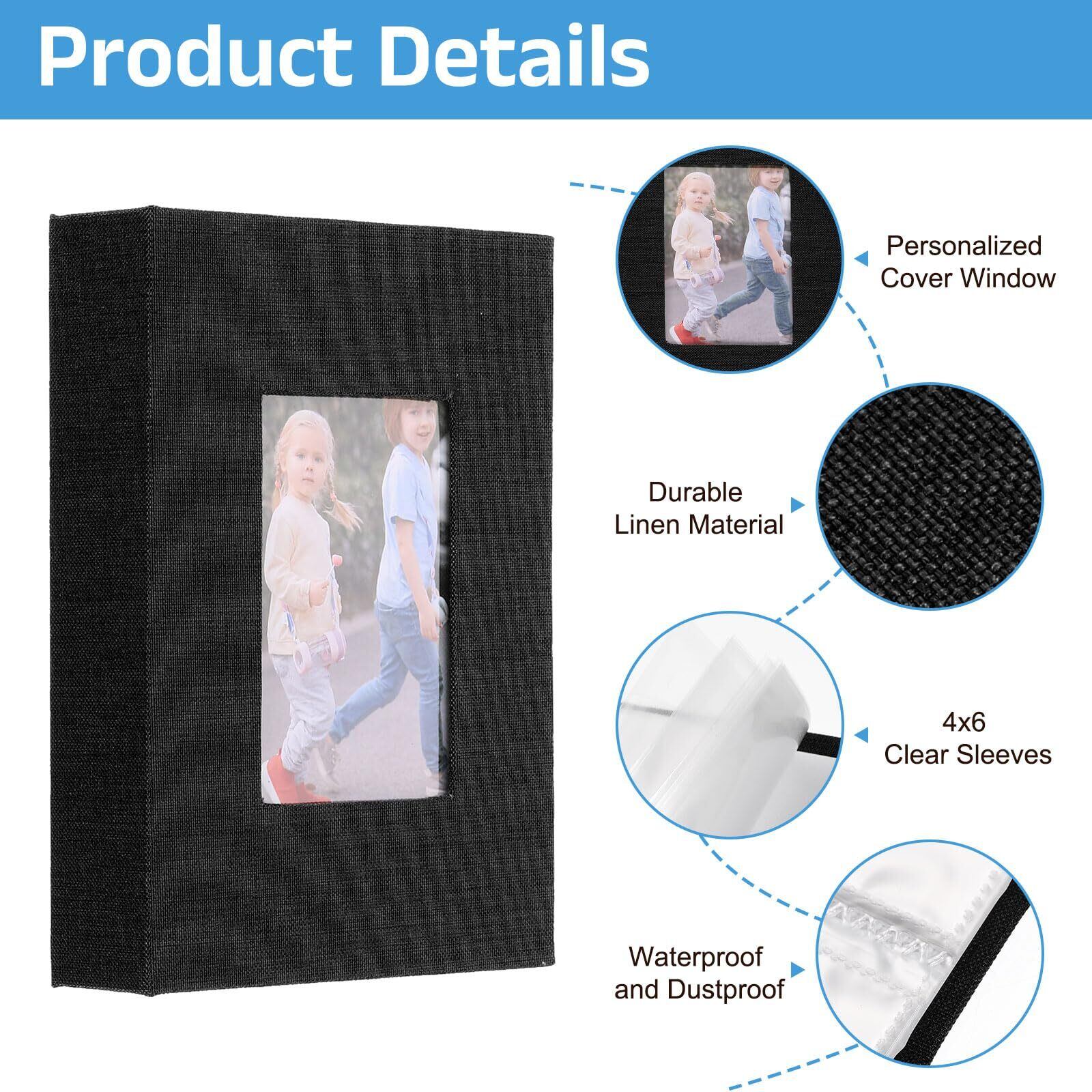uxcell 小さなフォトアルバム 4x6" リネンカバーポケット付きフォトブック ディスプレイウィンドウ付きスリップイン写真アルバム 家族 記念日に26ページ52枚 写真を収納可能 黒