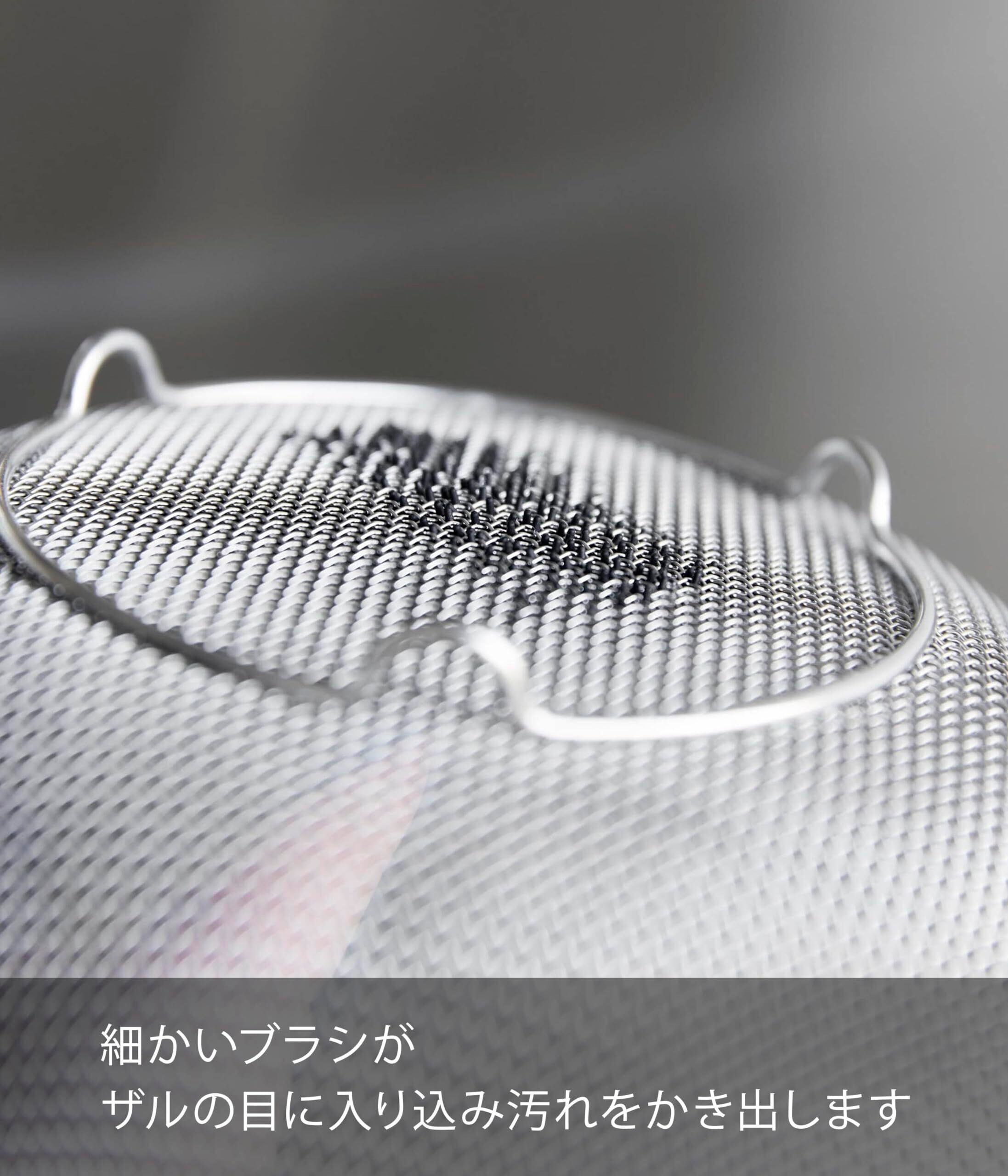 細かいブラシがザルの目に入り込み、汚れをかき出します。