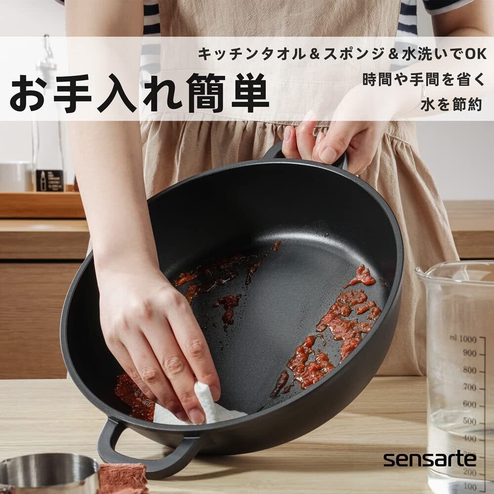 SENSARTE 両手鍋 卓上鍋 すき焼き鍋 28cm IH対応 ガス対応 一品万能 煮る 焼く 炒める 揚げる 焦げ付きにくい お手入れ簡単 ガラス蓋付 しゃぶしゃぶ カレー おでん