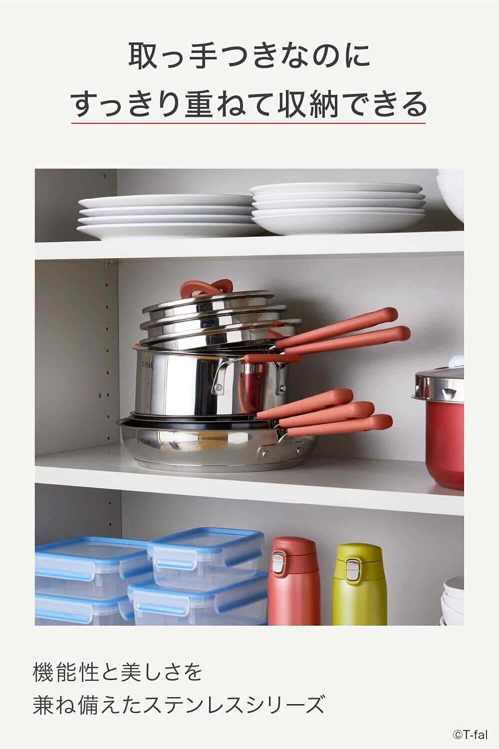 素材・材質:本体/ステンレス鋼 (クロム18%-ニッケル8%)、底/ステンレス鋼 (クロム18%-ニッケル8%)+アルミニウム+ステンレス鋼 (クロム16%)、取っ手/フェノール樹脂+ステンレス鋼 (クロム16%)、ふた/強化ガラス、ふたつまみ/フェノール樹脂、生産国:中国