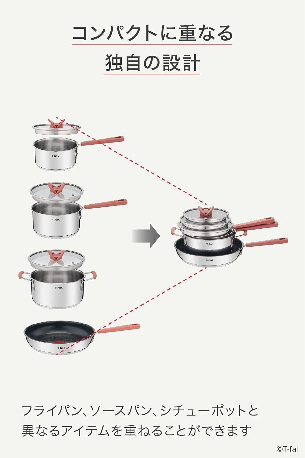 鍋のフタのつまみがフラットになり、鍋・フライパンを重ねて楽に収納が可能