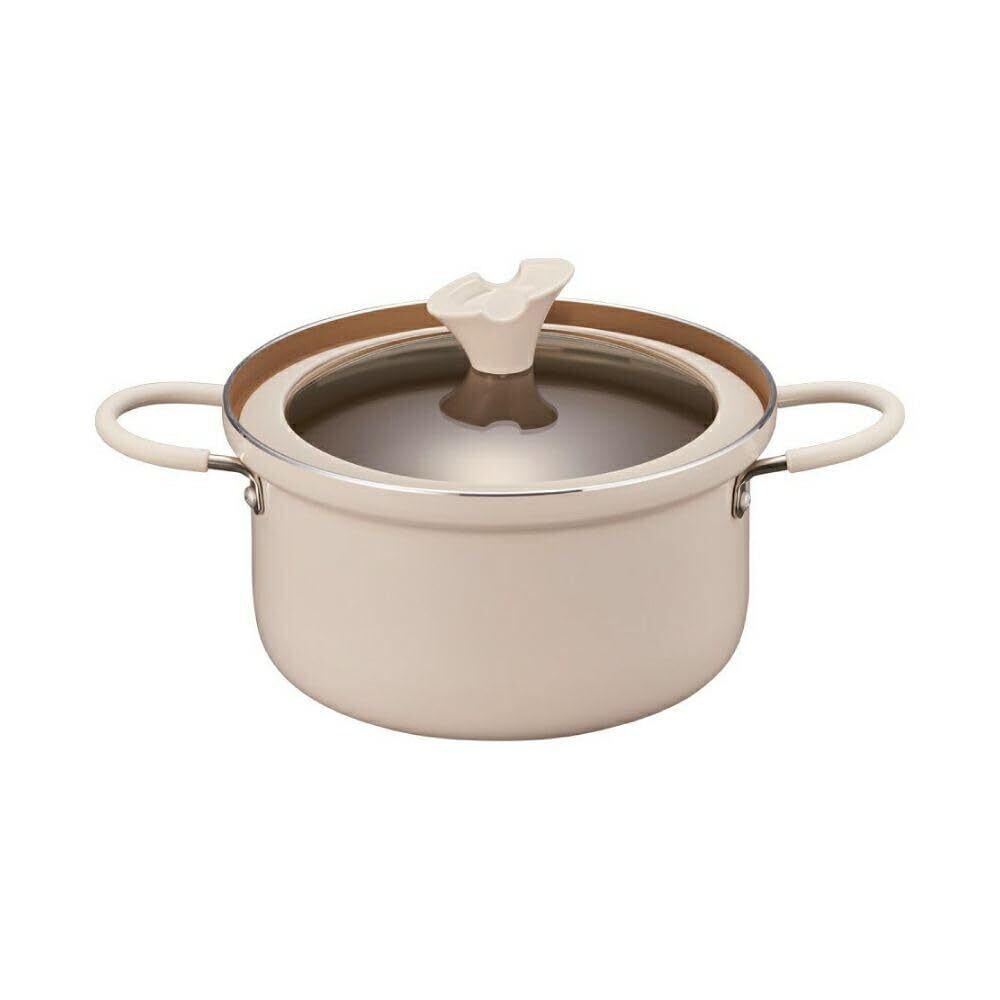 エバークック 両手鍋 20㎝ IH対応 ガス火対応 【500日対応】 ガラス蓋付き こびりつきにくい カレー シチュー鍋 アイボリー ドウシシャ