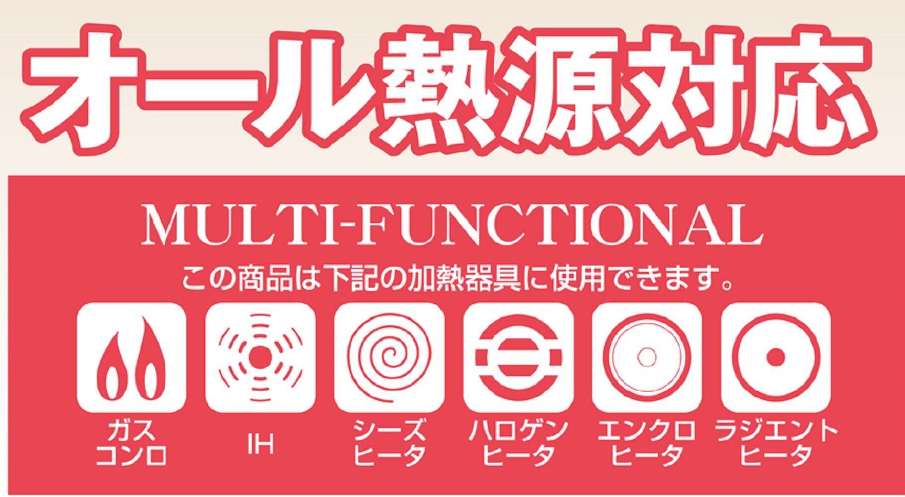 ガス火はもちろん、IHやハロゲンヒーターなどオール熱源に対応