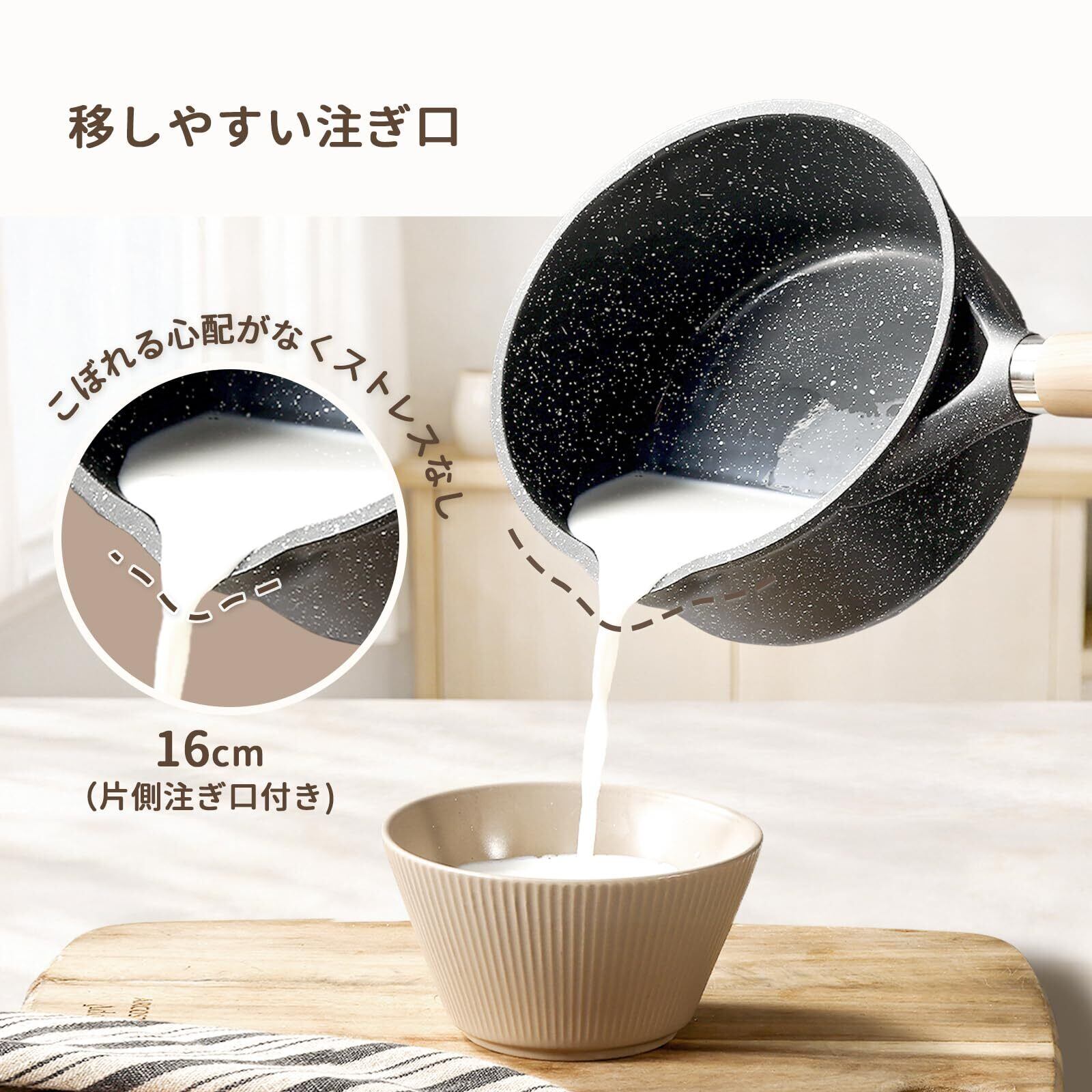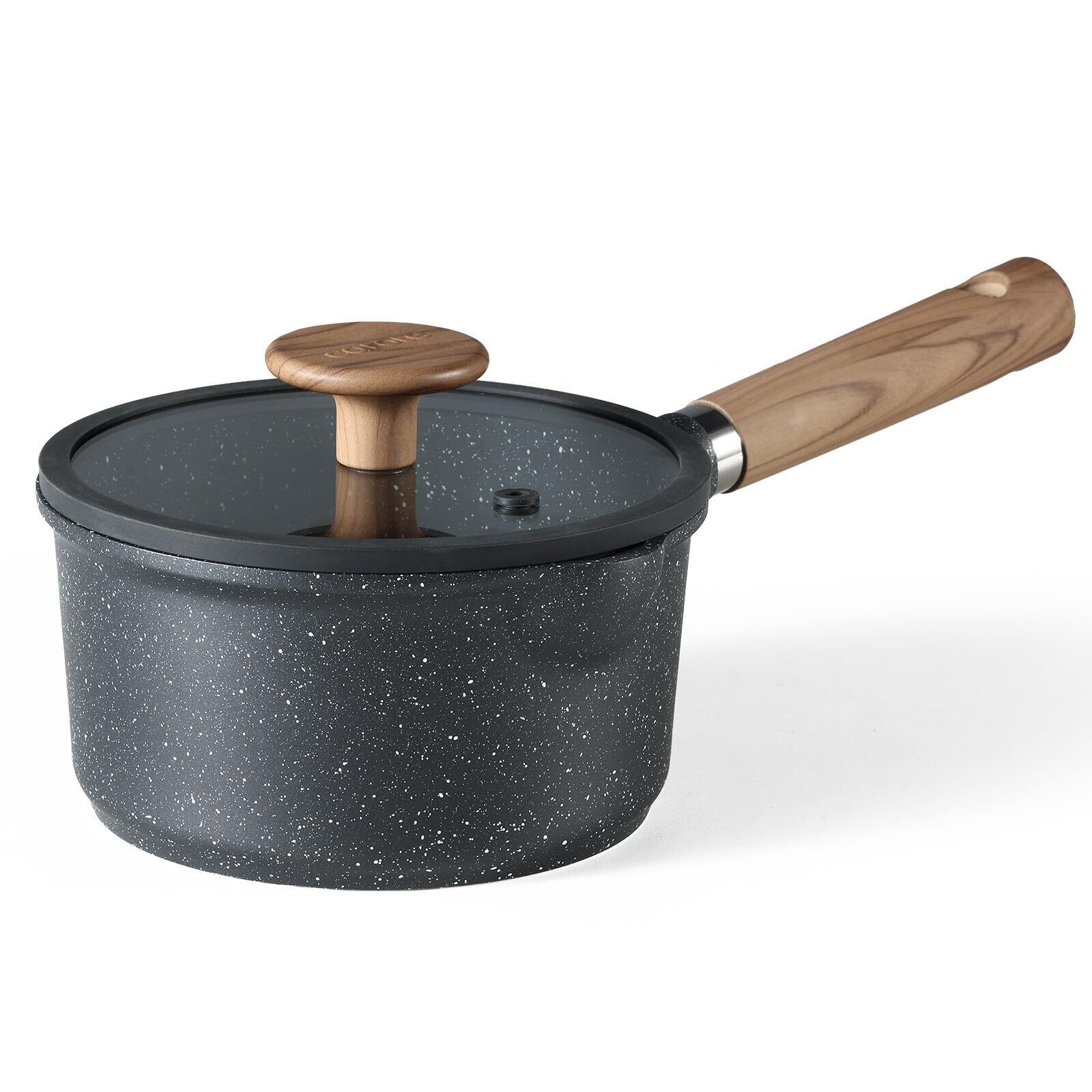 CAROTE カローテ 片手鍋16cm 蓋付き IH対応 PFOA PFOS フリー ソースパン マーブルコーティング くっつきにくく洗いやすい 一人鍋 揚げ物 煮物 一年 ブラック Cosy-Blackシリーズ