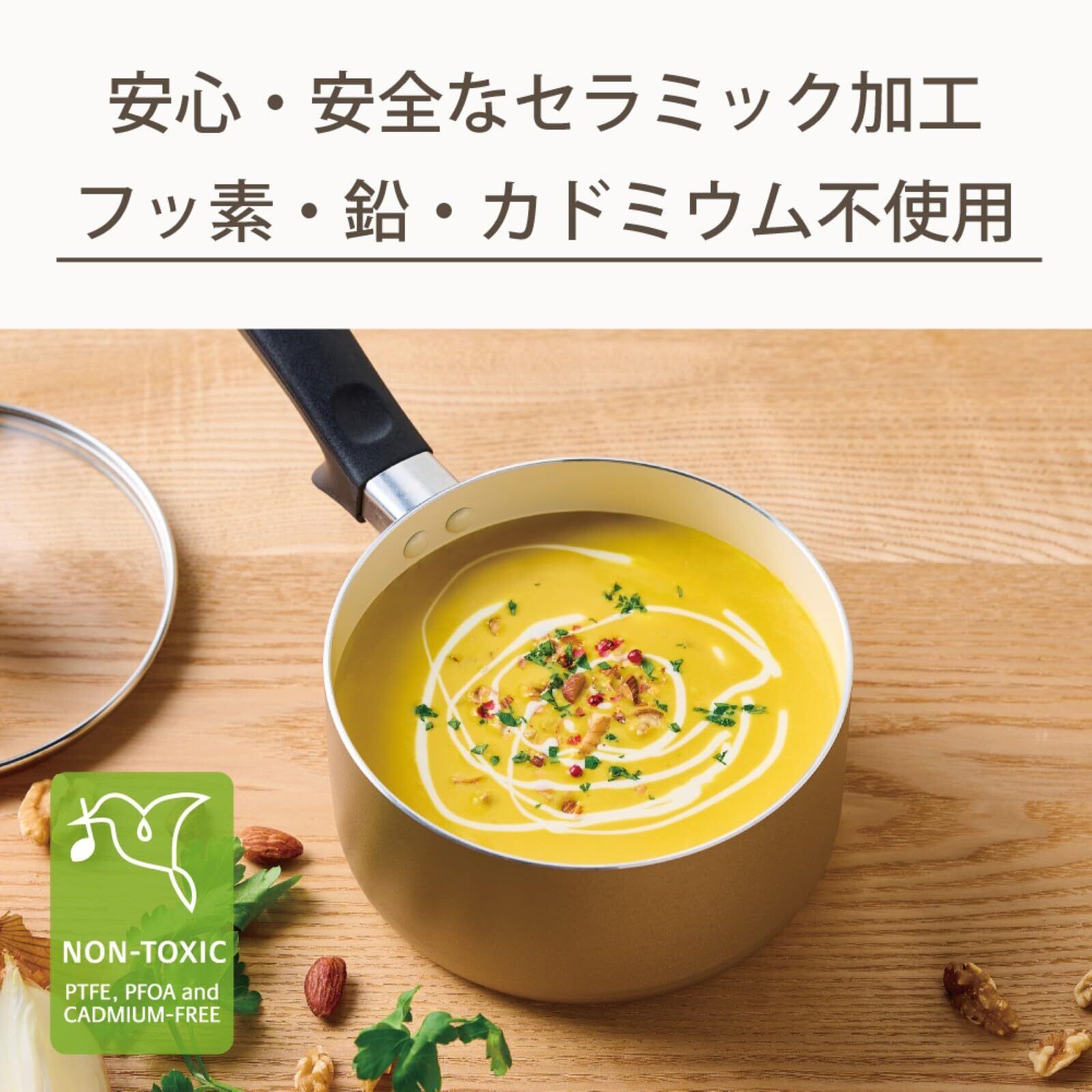 京セラ 片手鍋 18cm ガラス蓋付 セラブリッド PFAS 鉛 カドミウム フッ素 不使用 セラミック 加工 IH ガス 対応 中火以下 ベージュ IH対応 CN-18CBG-AZ 【 限定】