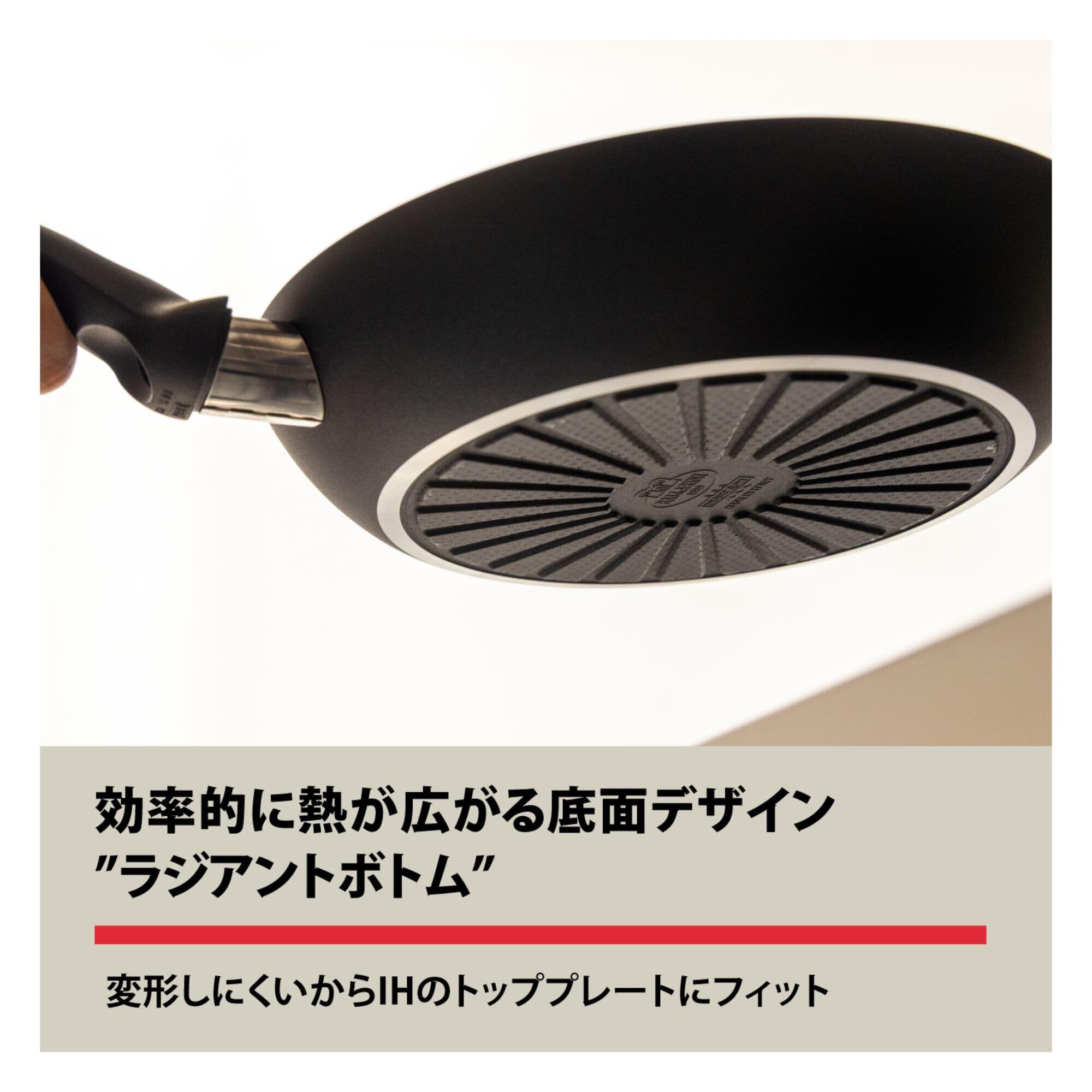 底面が広い浅型設計で、一度に多くの食材を調理しやすく熱がムラなく伝わりやすい