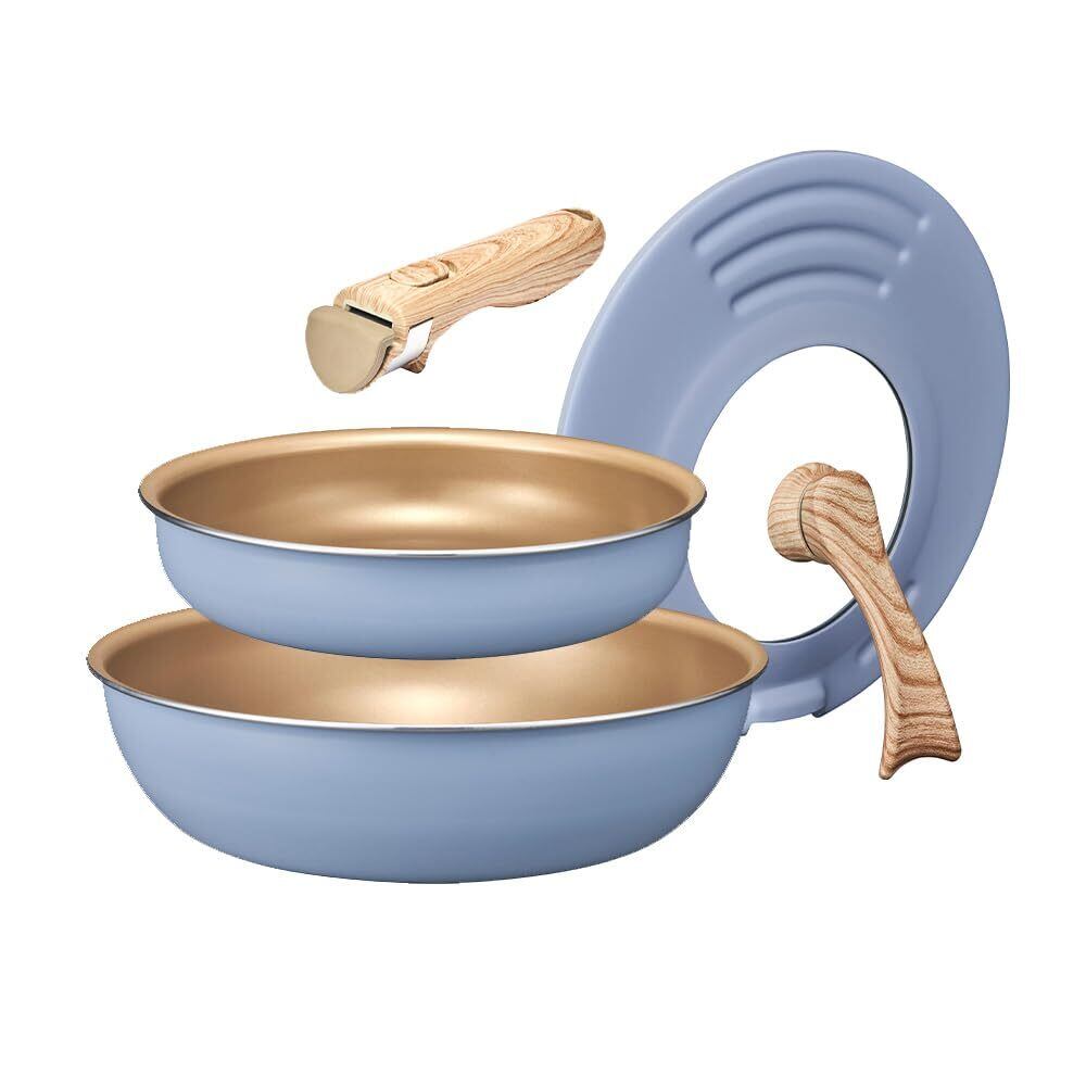 エバークック フライパンセット 4点セット(フライパン 20㎝ 深型フライパン 26㎝ 回転ハンドル立つ兼用カバー 20~26㎝用 専用ハンドルミニ) IH対応 ガス火対応 【500日】 PFOAフリー スモーキーブルー 着脱式 選べるシリーズ 取っ手のとれる ドウシシャ