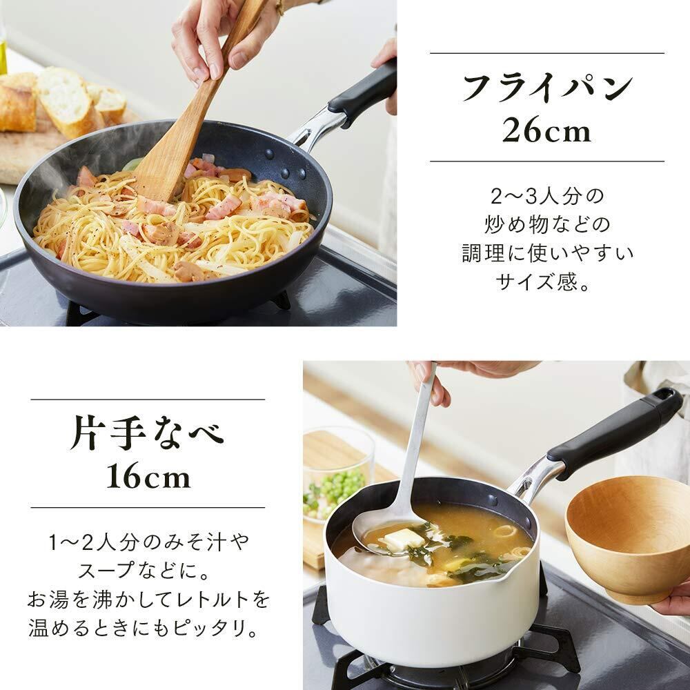 ひとり~2人暮らしに便利なフライパン・なべ・ガラスふたのセットです。新生活にもピッタリ。
