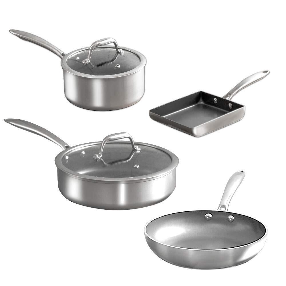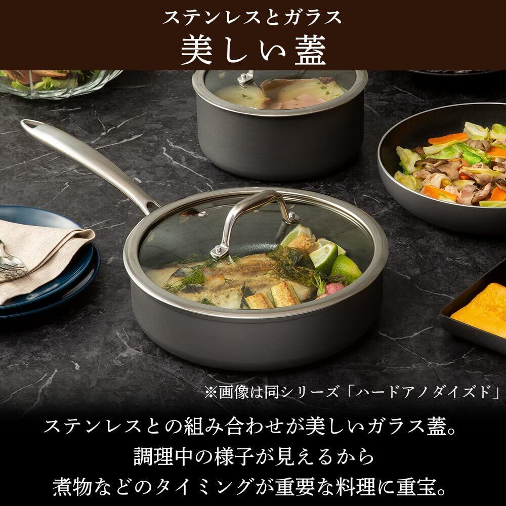 セット内容;フライパン 24cm、マルチパン 24cm、片手鍋 18cm、エッグパン、ガラスふた18cm/24cm