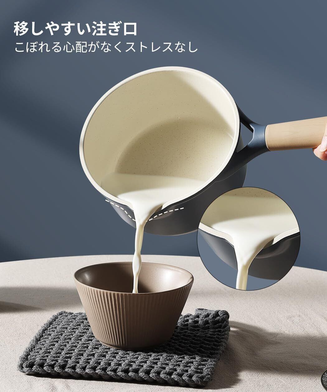 【快適な調理体験】内面がマーブルコートをしているため、焦げ付きにくくスムーズに調理できます。調理後もスポンジで軽く拭くだけで、汚れもスルッと落ちます