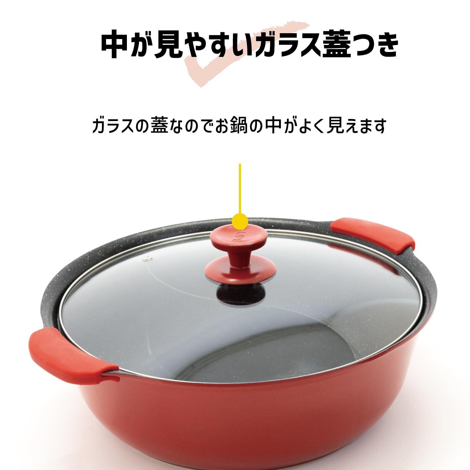 二色鍋 ハーモニーポット ガラス蓋付 フッ素加工 仕切り付き 卓上鍋 両手鍋 鍋 火鍋 しゃぶしゃぶ 鍋 ih 火鍋 二食鍋 ふっ素加工 IH対応 PFOSフリー