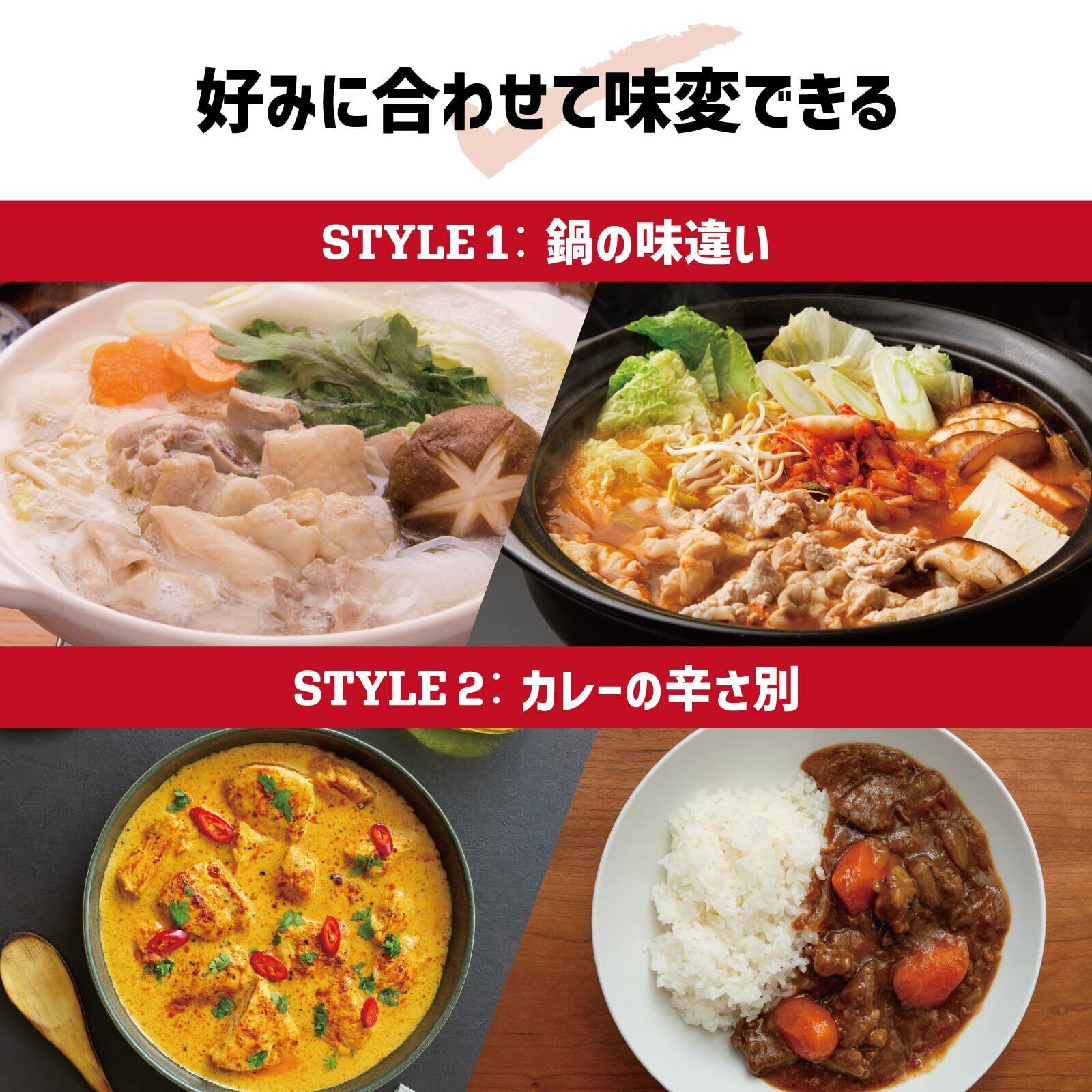 【2種類の同時調理】すき焼き、寄せ鍋、キムチ鍋、水炊きなどの鍋物や、煮ものなどが同時2つ調理可能。