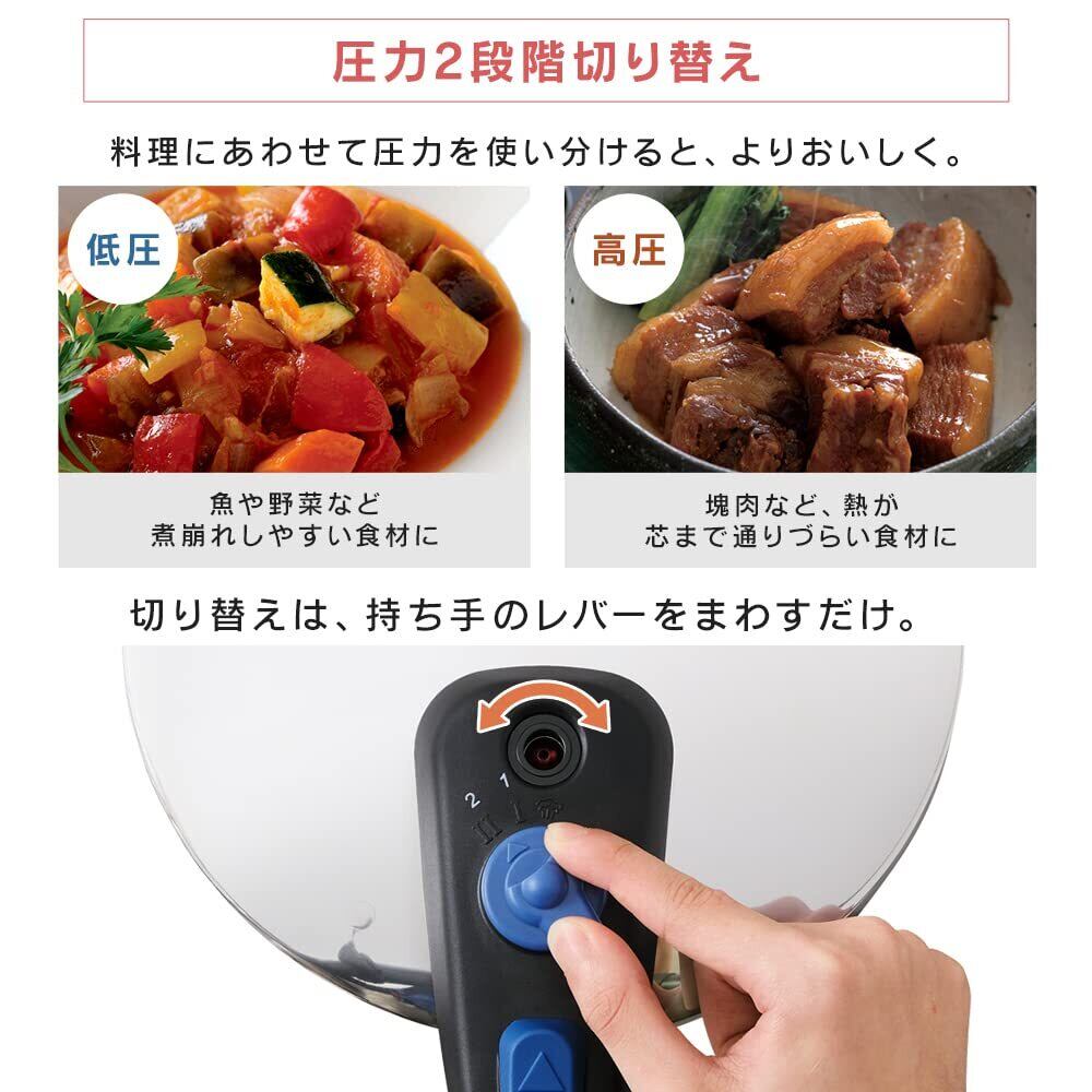 料理に合わせて低圧・高圧の切り替えが可能。