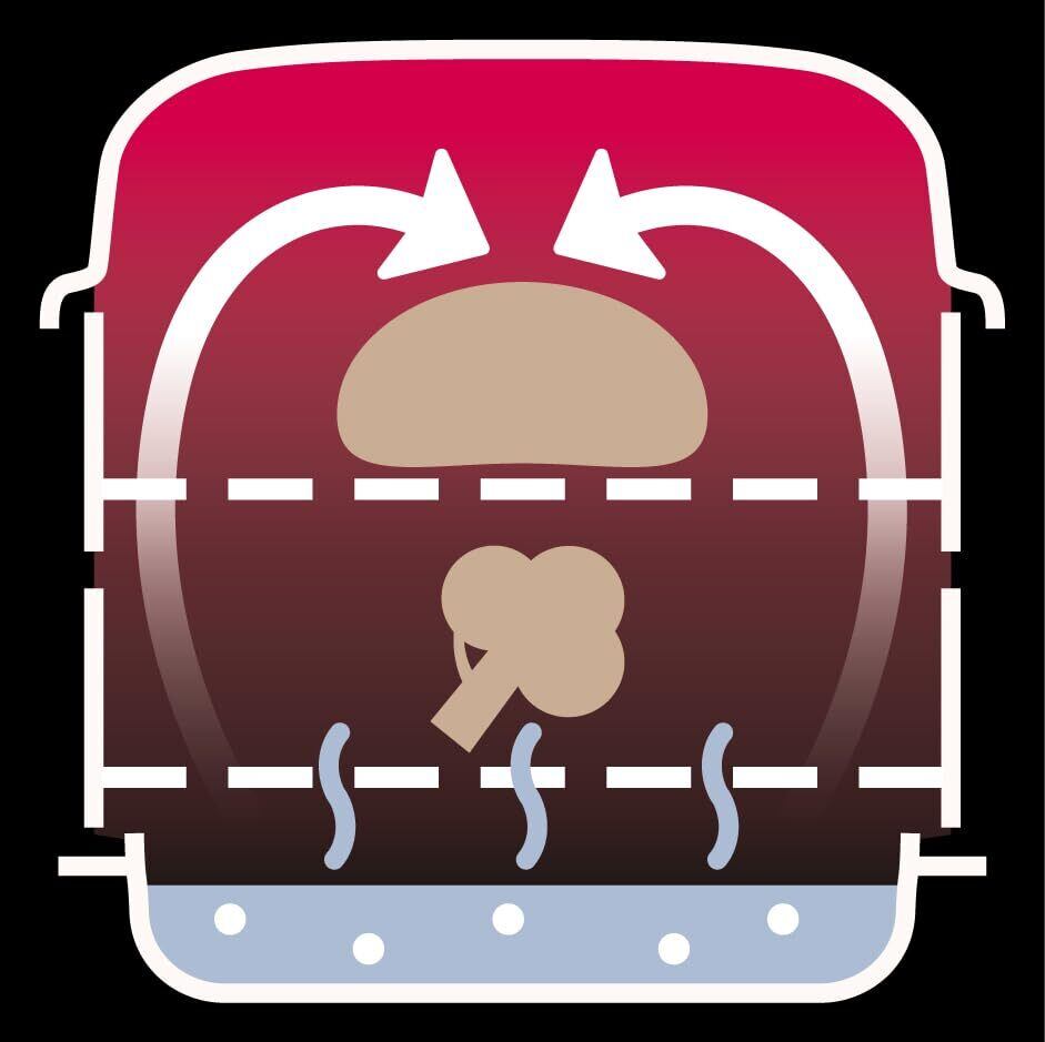 底皿からスチームでくまなく循環加熱します。