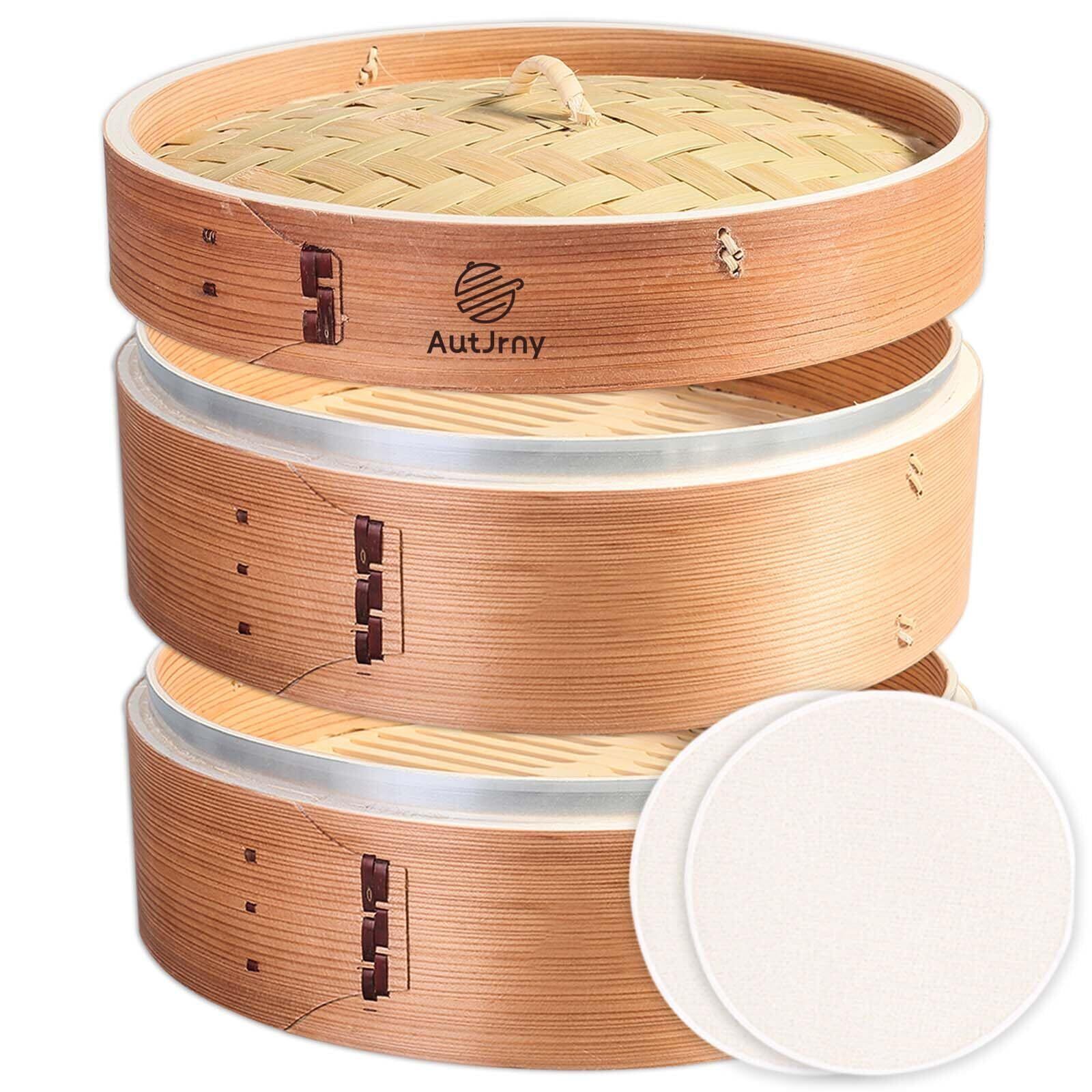 100%天然杉の工芸品:この多機能蒸し器セットは、ペイントやワックスを一切使用せず、細心の手作業で作られています。2層と蓋、そして再利用可能なコットンライナー2枚が付属しており、料理愛好家に最適です。