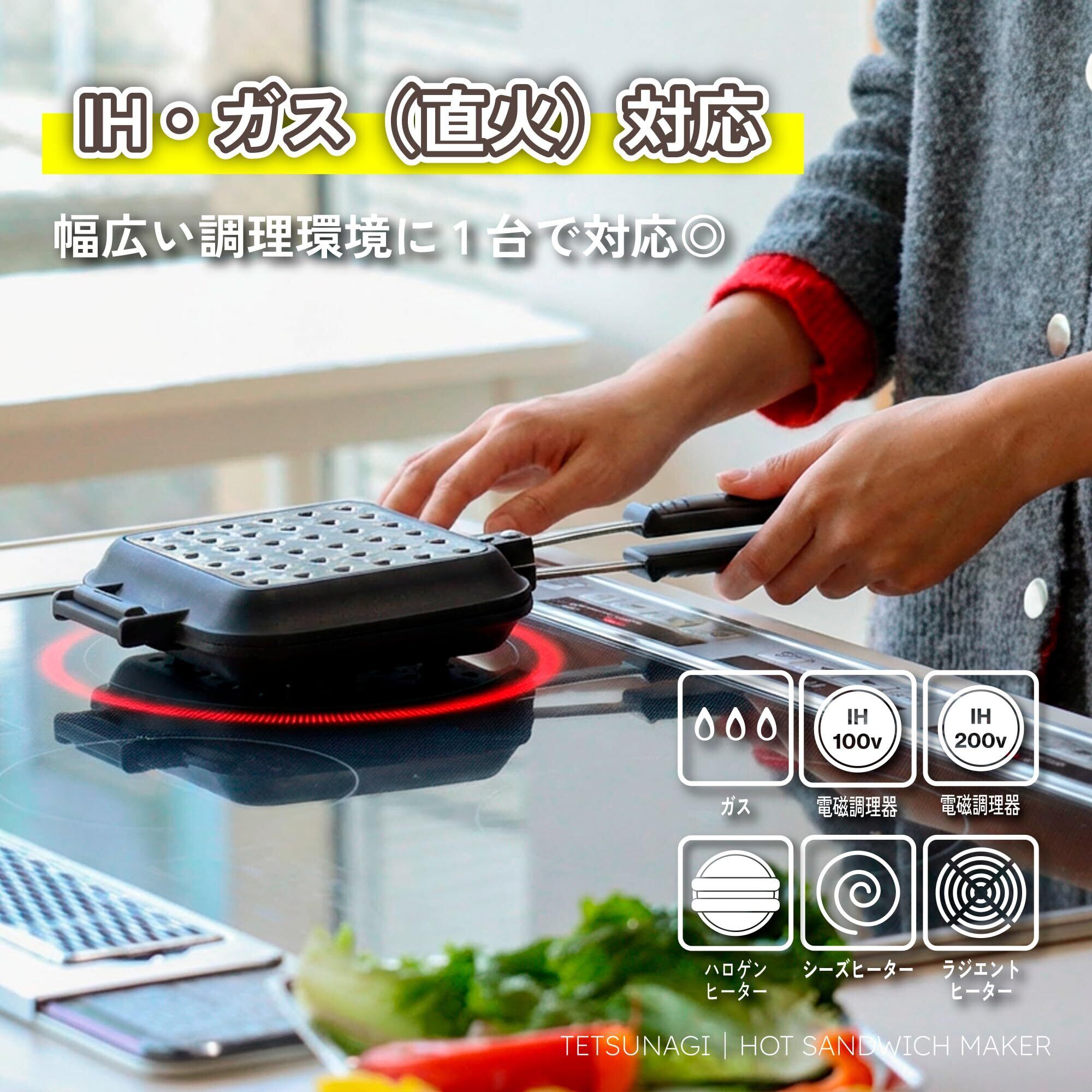 【燕三条製】TETSUNAGI (テツナギ) ホットサンドメーカー IH・ガス直火対応 日本製|着脱式プレートで洗いやすい 毎日の朝食づくりに便利な調理器具 |T100900