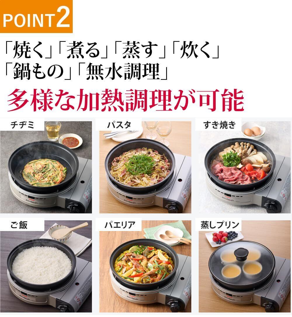 1)イワタニ カセットフー ビストロの達人プラス シルバー CB-BST-PLS:本体サイズ(幅×奥行×高さ) 387×318×202mm、本体の重さ 約3.5kg、最大発熱量 2.3kW (2,000kcal/h)