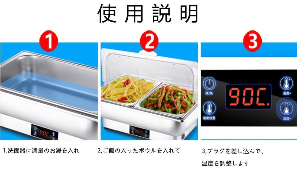 ビュッフェサーバー チェーフィングディッシュ chafing dish 13.5L 湯煎式 ステンレス製 保温調理鍋 ビュッフェサーバー food warm 温度調整加熱ウォーマー温度制御 保温トレイ 電気ミールストーブ100v (角型3連)