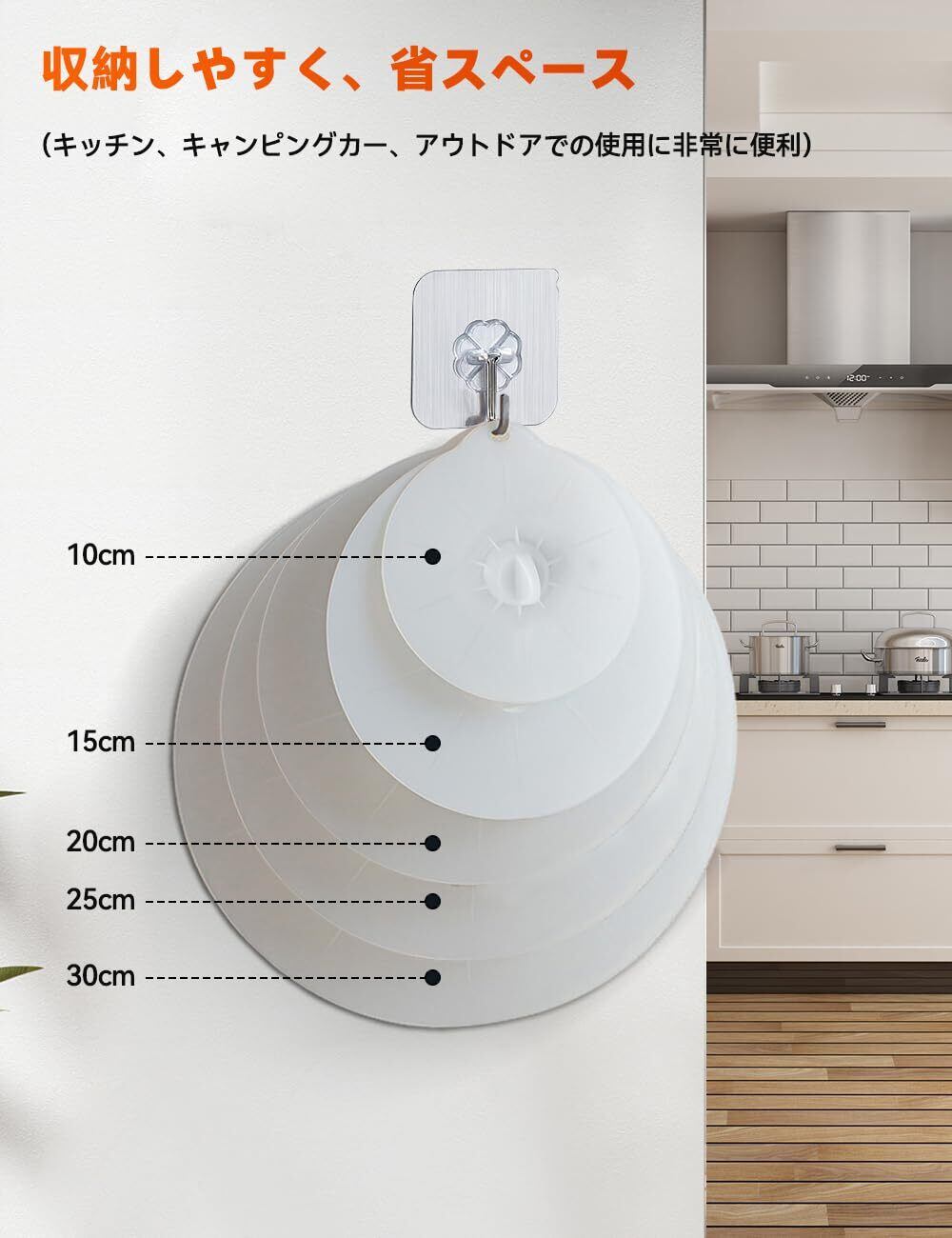 【5種サイズユニバーサルカバー】:5つの異なるサイズのシリコン吸引蓋が含まれており、シリコンふたは、ステンレス鋼、金属、ガラス製のほとんどの鍋、フライパン、ボウル、プレート、カップ、瓶、その他の容器に適合します。