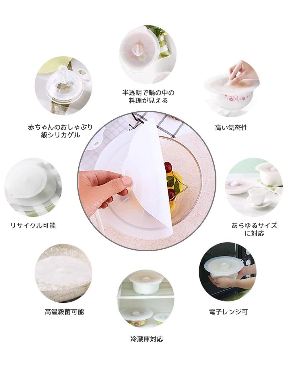 シリコン蓋 シリコンラップ フライパン 半透明落し蓋 耐熱耐冷 シリコンふた 鍋蓋シリコンマグカップ蓋 シリコンカバー 密閉蓋 調理の貯蔵 吸着力 電子レンジ 食洗機対応 食品保存 収納便利 再利用可能 ストレッチリッド 缶 コンテナ 防塵蓋 キッチン用品 5セット (半透明ホワイト)