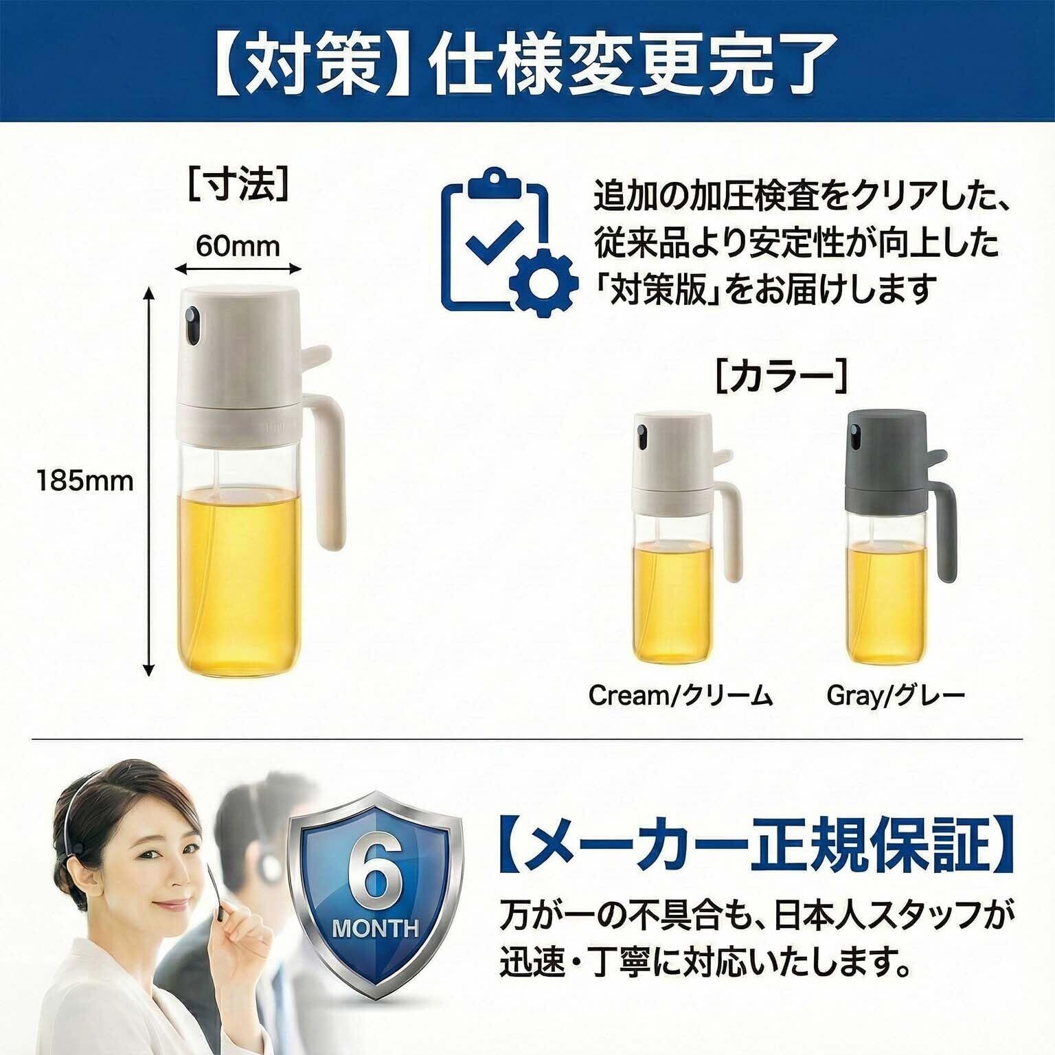 オイルスプレー オリーブオイル 耐熱ガラス ノンフライヤー スプレー ミスト 調味料入れ オイルポット 小さい 料理用 食用油 キッチン用具 液だれしない 垂れない 250ml (クリーム)