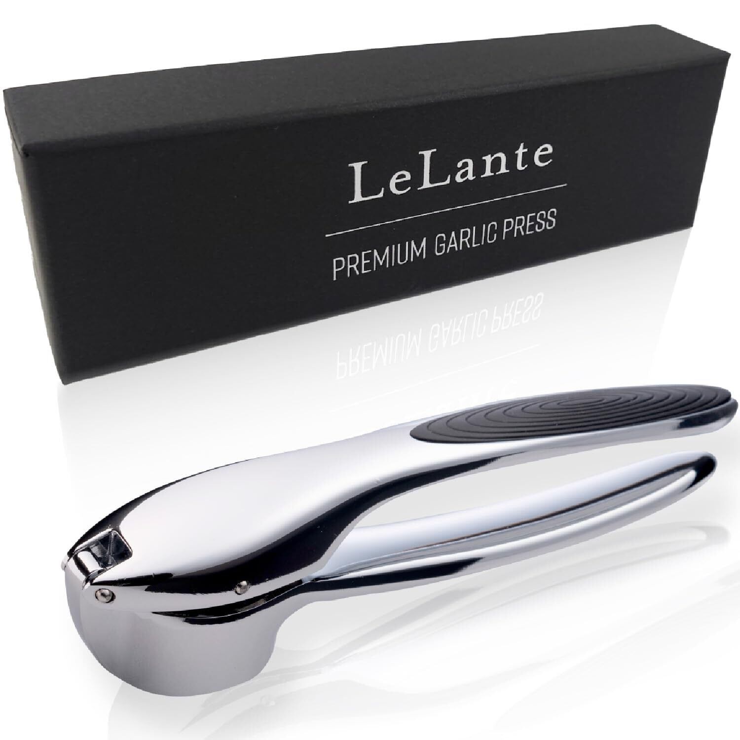 【選ばれる理由】 LeLante にんにくつぶし器 がついに正式販売開始。洗練されたデザインが魅力。製品には握りやすい特製ゴムグリップに加えて、しっかり絞りきれるようにエンボス加工を施しています。デザイン性と機能性を両立させる ガーリックプレス です。