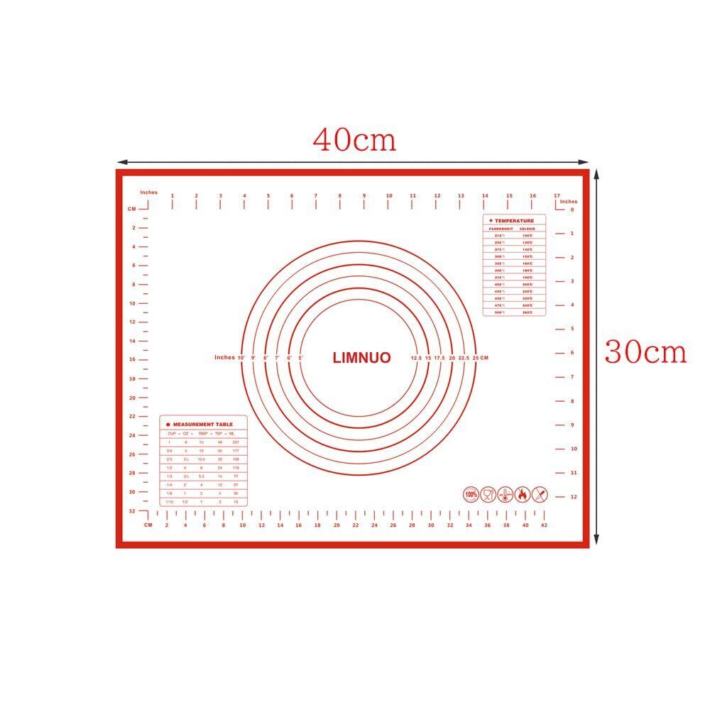 LIMNUO クッキングマット シリコンマット パンマット 製菓マット 目盛り付き 大きいサイズ 食品級シリコーン 滑り止め 製菓道具 (レッド, 30X40CM)