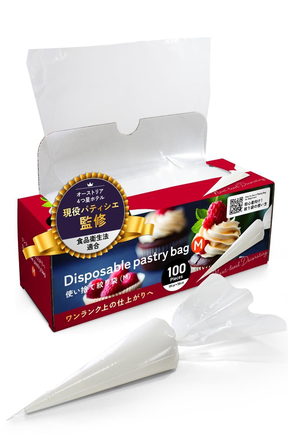 絞り袋 【現役パティシエ監修&動画】 100枚箱入り Mサイズ(19cm×36cm) 【食品衛生法適合済】 お菓子作り道具 口金