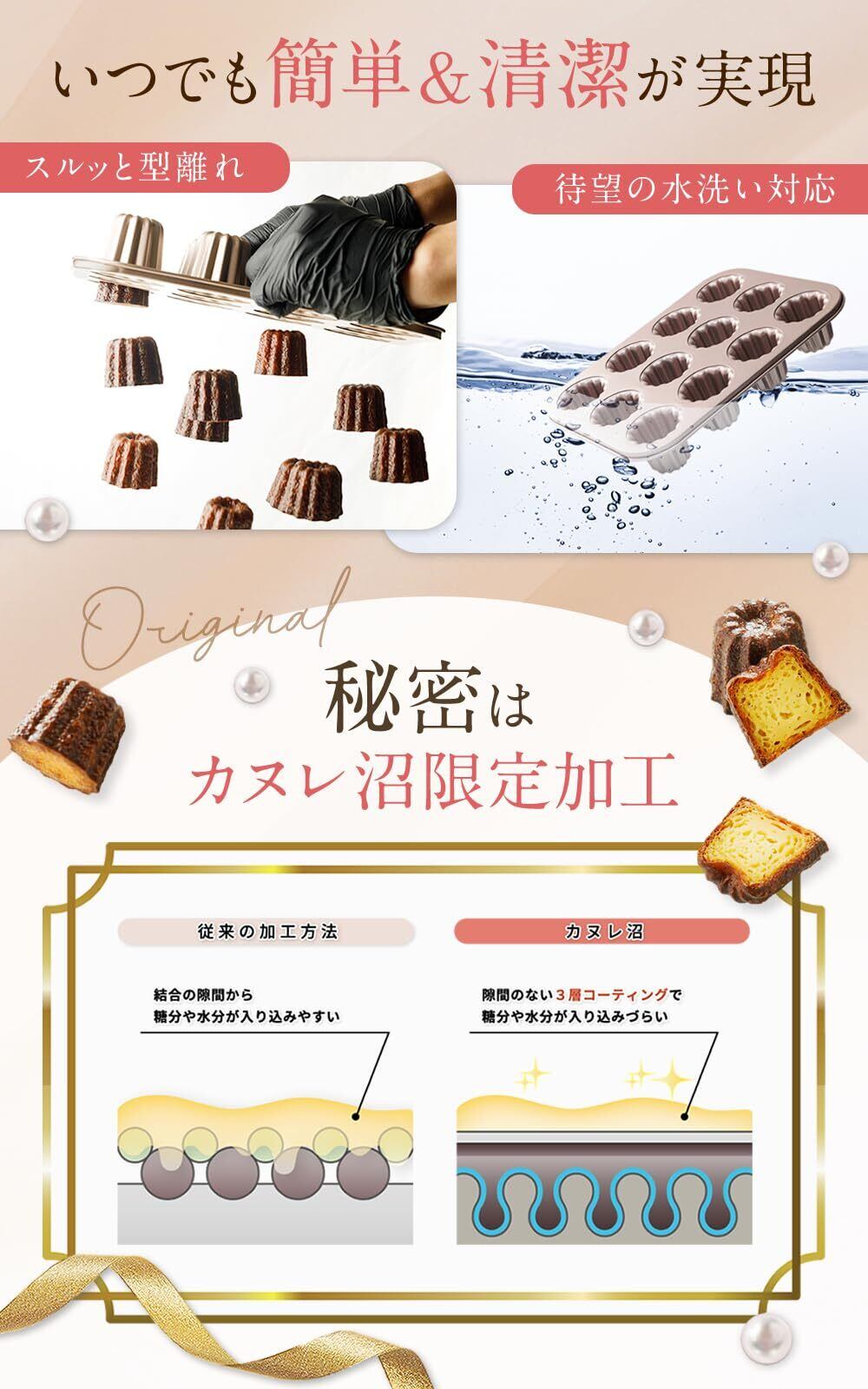 【お手入れ楽チン特殊加工】カヌレ 沼 限定特殊 シリコン 加工済みだからお菓子型なのに水洗いができます。 こびりつかないと型離れと水洗いでいつも清潔で安心