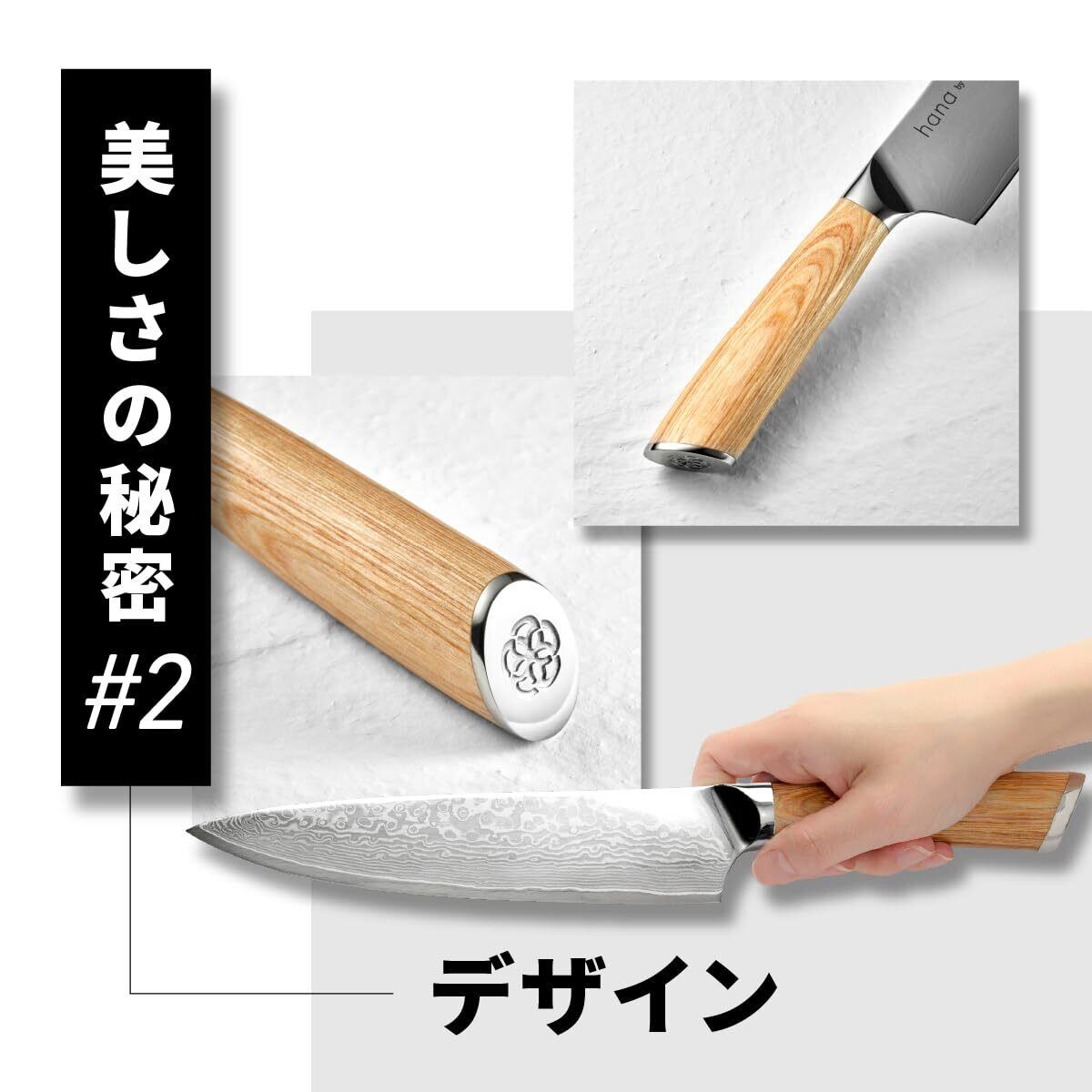 【 hana 三徳包丁 】18cm|180g|天然ホワイトオーク|67層ダマスカス