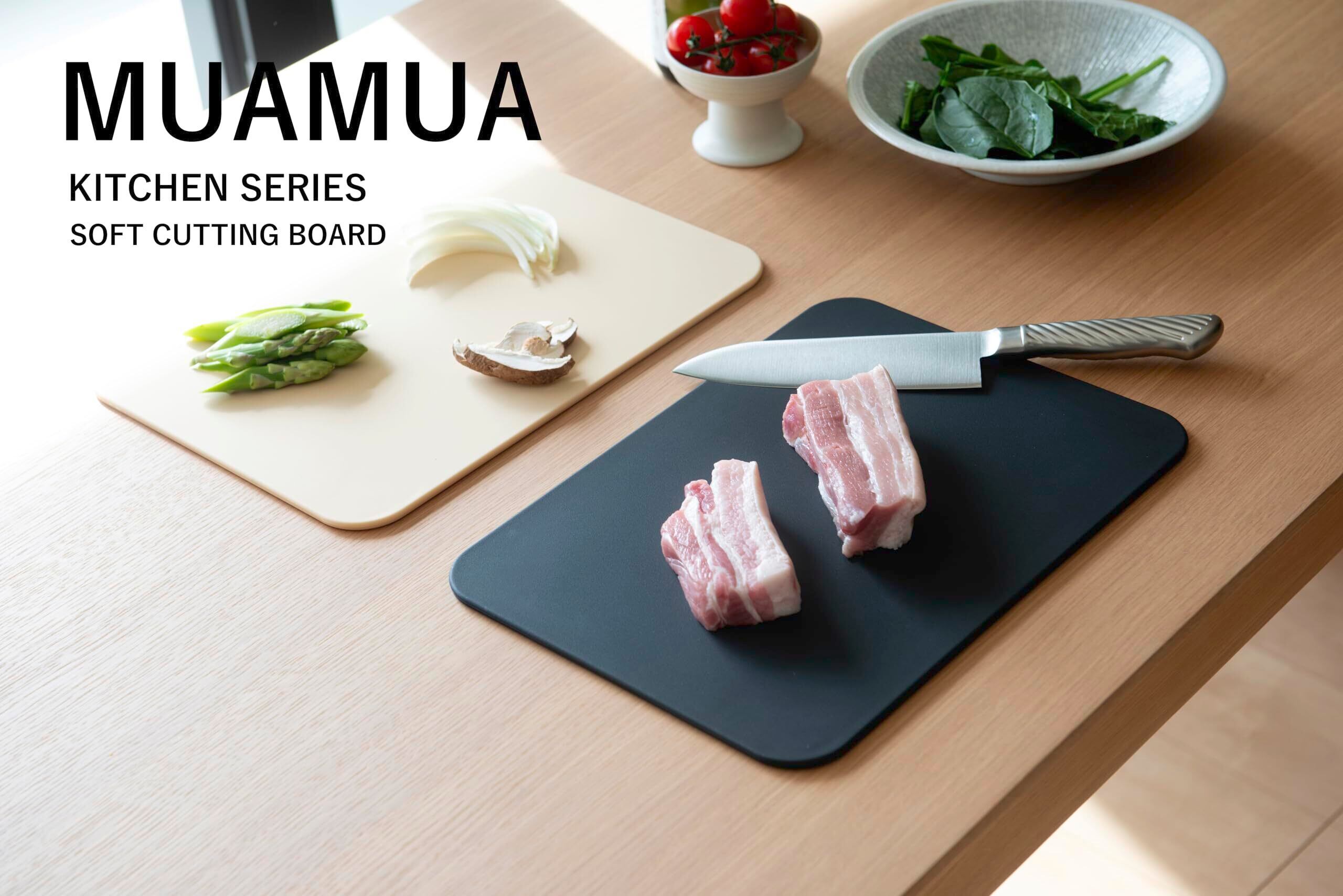 MUAMUA まな板 ゴム 黒 耐熱エラストマー 食洗機対応OK 滑らない 高級まないた 抗菌 柔らかい ブラック おしゃれ俎板 両面使用可 33×24×0.5cm 軽い