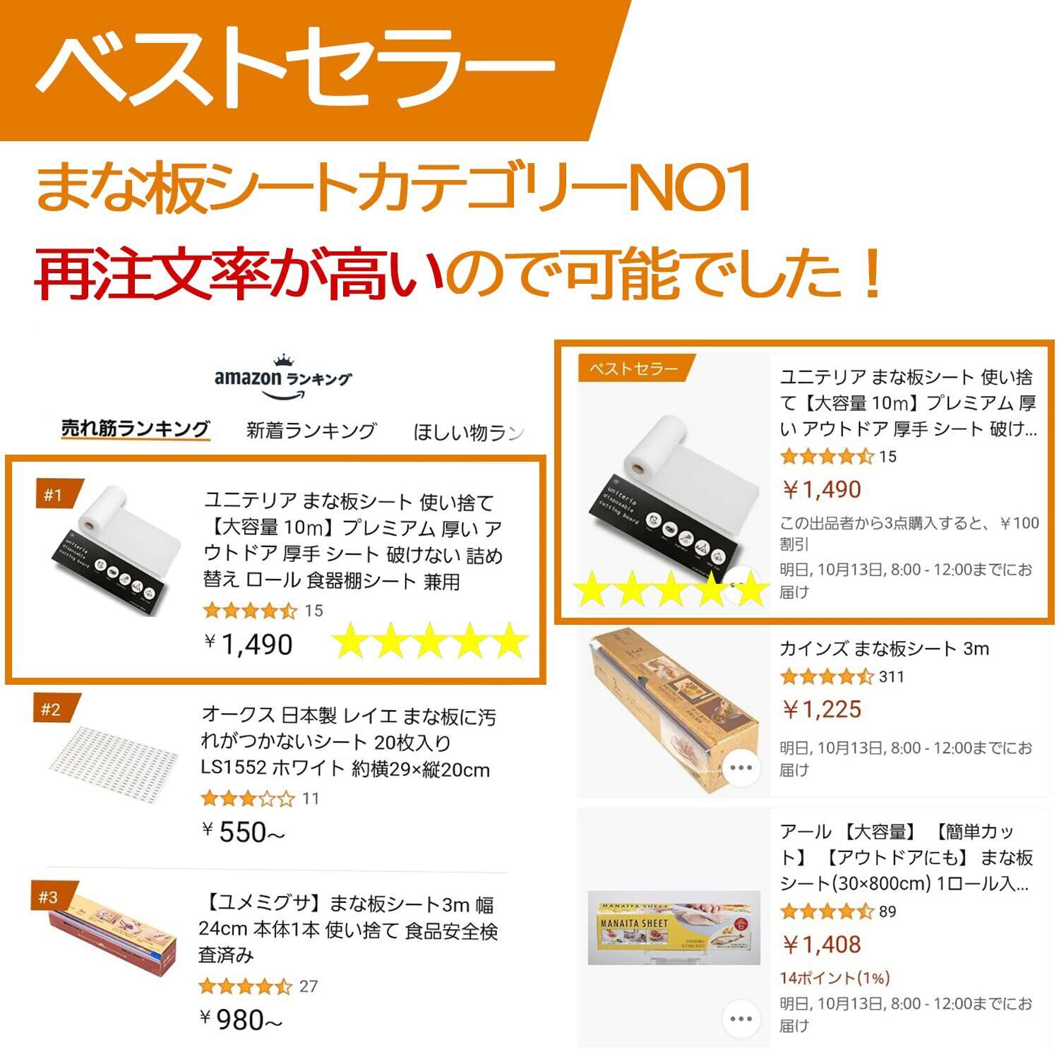 ユニテリア まな板シート 使い捨て【大容量 10m】プレミアム 厚い アウトドア 厚手 シート 破けない 詰め替え ロール 食器棚シート 兼用