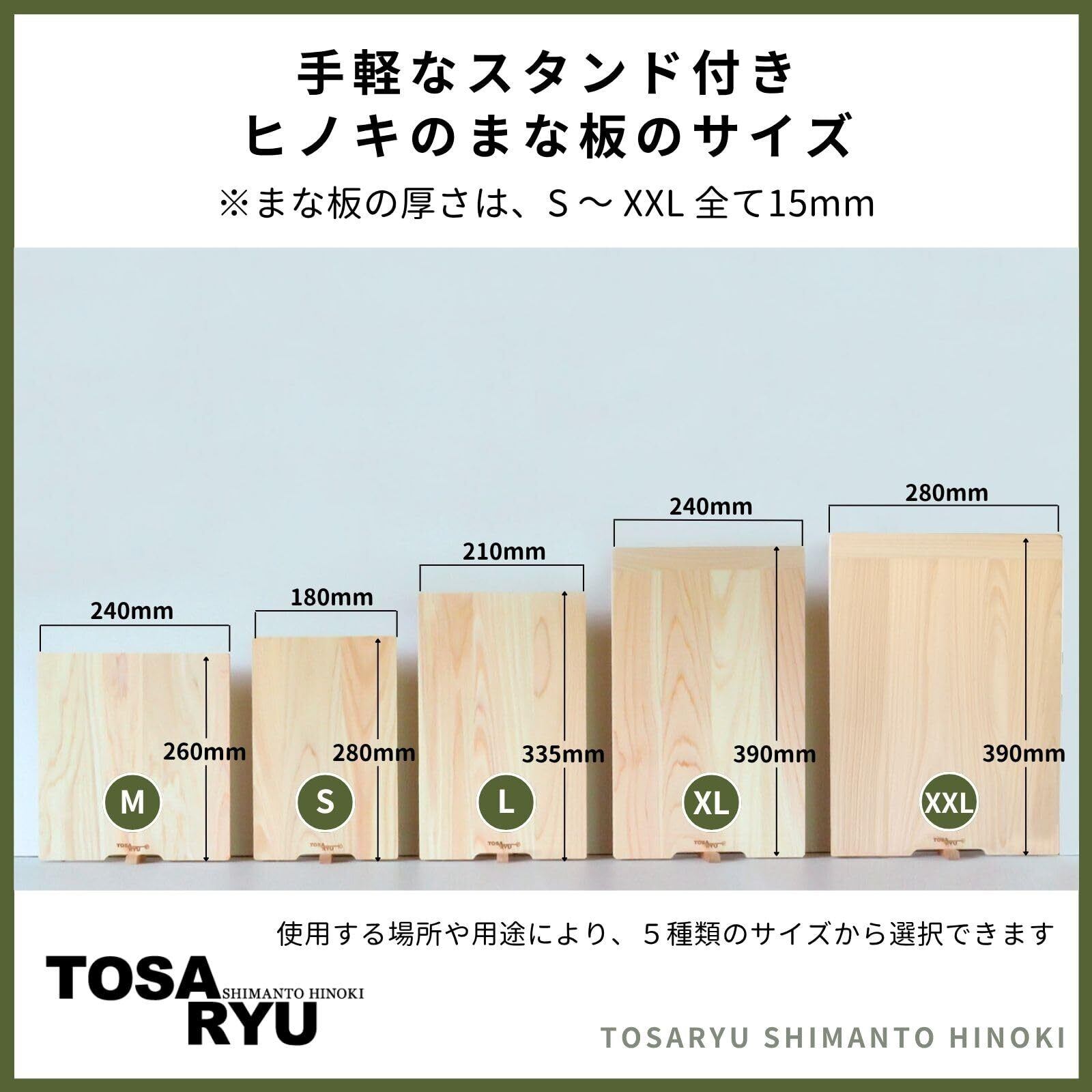 土佐龍 HS-5003 手軽な スタンド付き ヒノキのまな板 (L) TOSARYU SHIMANTO HINOKI 33.5x21x1.5cm 日本製