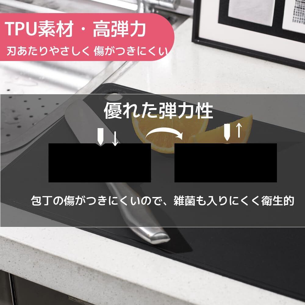 軽い力でスッと切れる|毎日の料理がラクに。TPU素材が包丁の刃をやさしく受け止め、刃が自然に食い込むため、力を入れなくても食材を最後まできれいにカット。手や手首が疲れにくく、毎日の家事をサポートします。