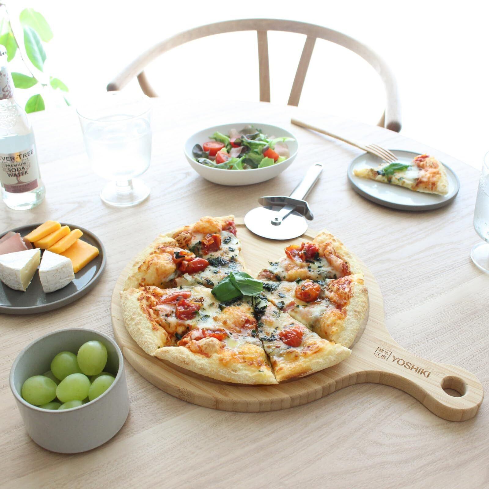 竹美商事 良木工房(YOSHIKI) 竹製 カッティングボード ピザ まな板 丸 ピザボード ピザ皿 パン切台 ナチュラル ピザプレート YK-BCB1