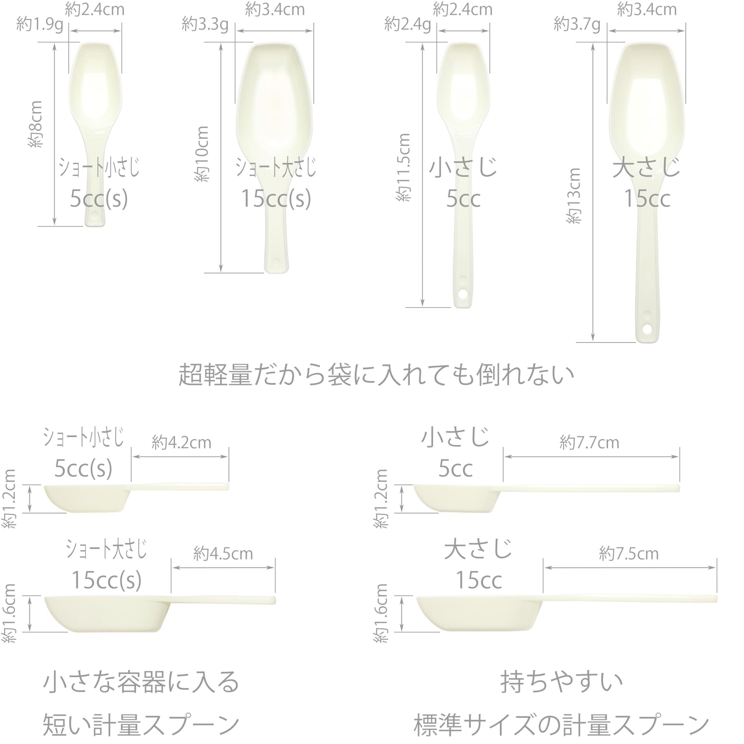 5cc x3個【ショート】容器に入る 短い 小さじ 平先 平底 すくいやすく 目分量でサッと調整 計量スプーン 5ml 水5g 持ち手がとても短い仕様です
