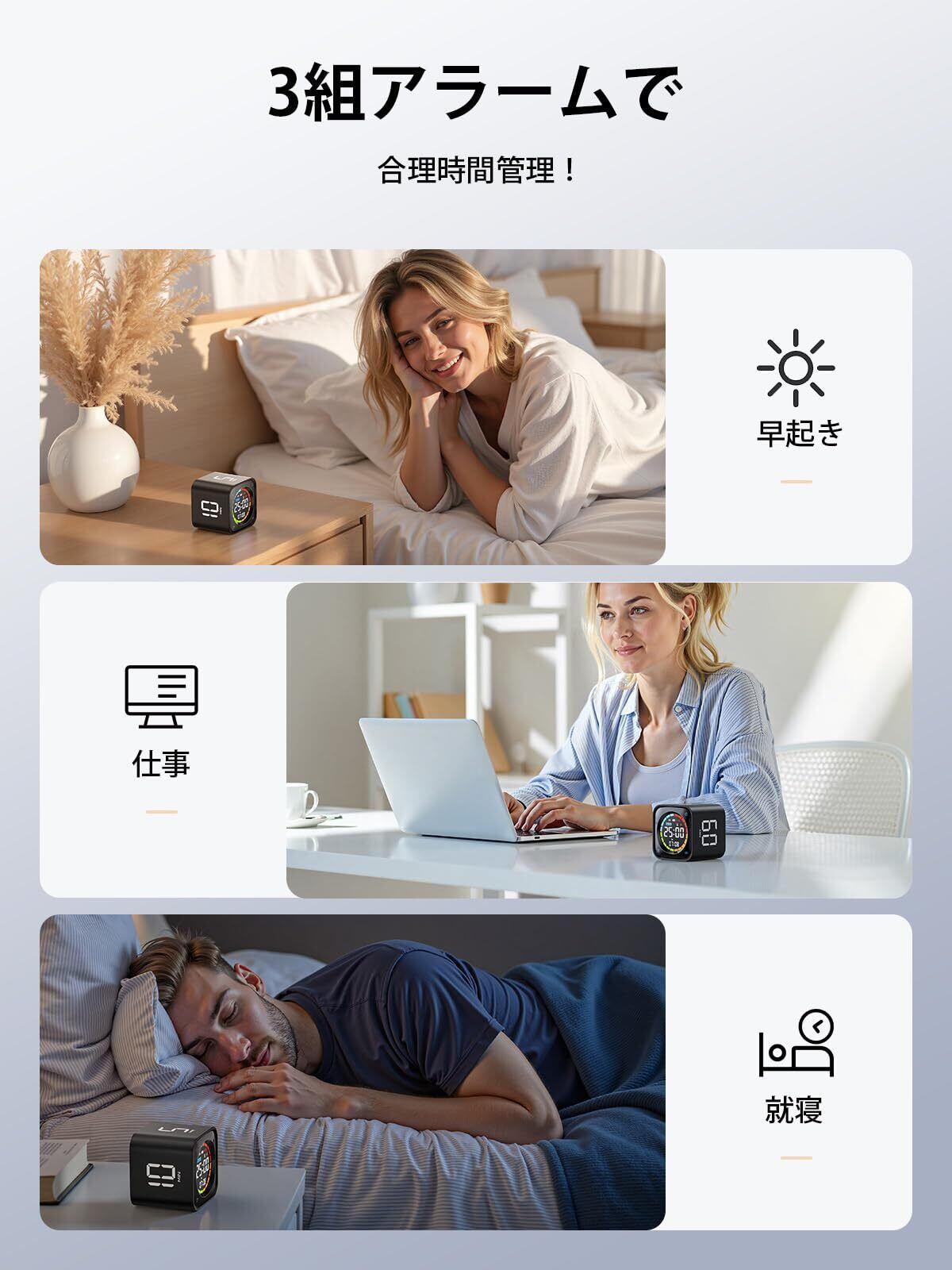 【“使いたい瞬間”にぴったり合う細やかな設計】3段階の音量調整に加え、バイブレーションモードと無音モードも搭載しており、仕事や勉強などの使用シーンに応じて自由に切り替えることができます。仕事の場面では、オフィスや会議中など音を出せない環境でも静音や振動でしっかり時間を知らせてくれるため、周囲に迷惑をかけずに集中力を維持できます。勉強の場面では、図書館や自習室など静かな空間での使用に適しており、低音量または振動で静かにアラームを知らせることで、周囲に配慮しながら効率的な時間管理が可能です。さらに、カウントダウン中に一時停止と再開ができる機能も搭載しており、突然の電話や小休憩などにも柔軟に対応できます。毎回時間を再設定する手間が省けるため、使い勝手が大幅に向上しています。
