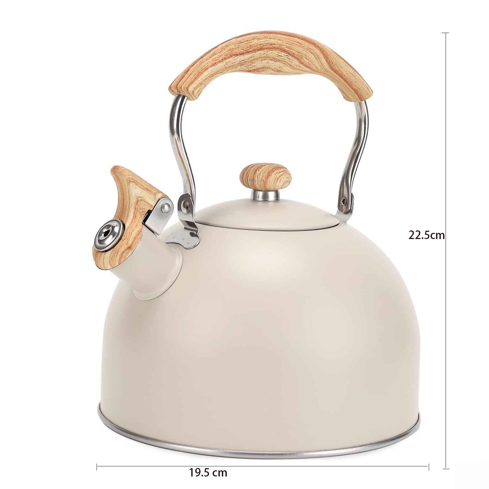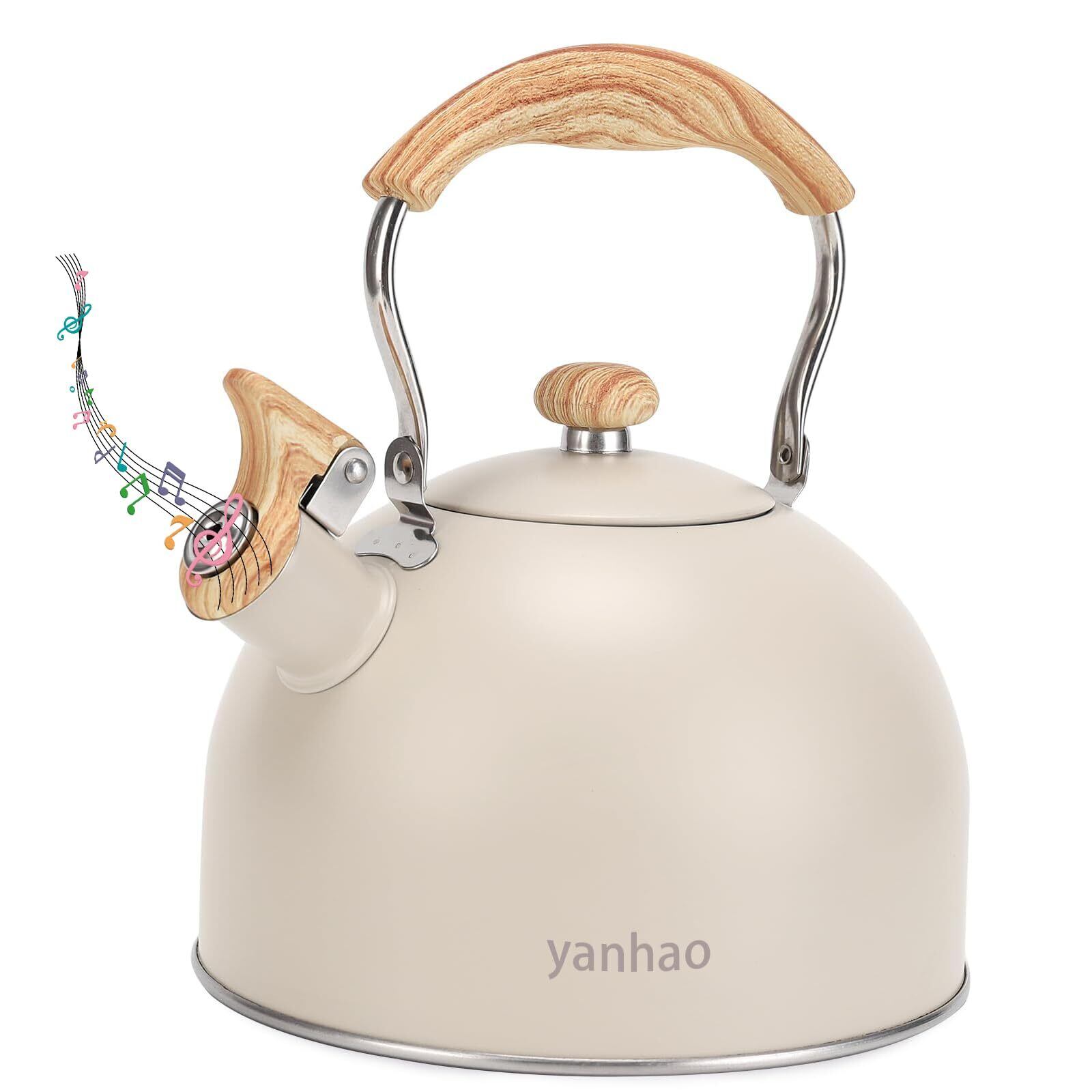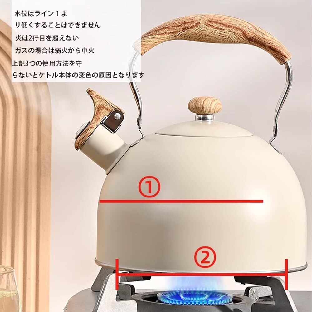 Yanhaoやかん 笛吹きケットル 2.5L 広口 ケトル ステンレス製 木目ハンドル 大容量 IH対応 やかん おしゃれ 調理器具 (オフホワイト)