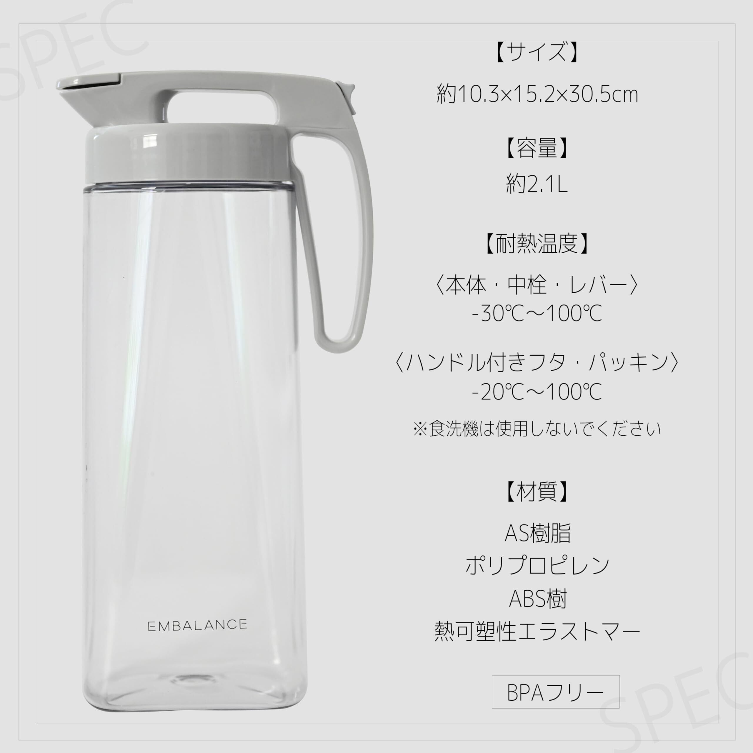ハンドル付フタ・パッキン一体型タテヨコ両置きピッチャー/エンバランス(EMBALANCE) シームレスピッチャー L 2.1L T22433 日本製