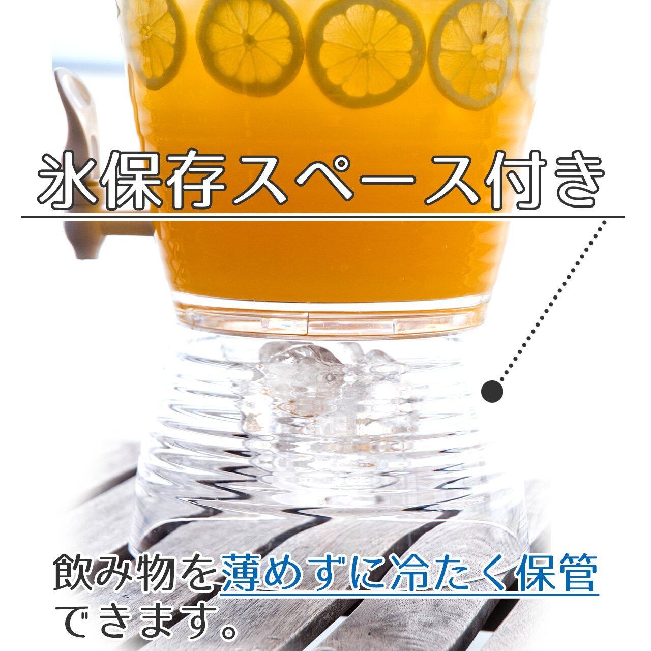【高い安全性️】 アクリス製で軽くて割れにくいため、万一倒しても安全。お子様も怪我の心配等なく、ご使用頂けます。コック(蛇口)は、食品衛生法に基づいた安全な素材を使用。【2019年8月NEW️】一部のお客様よりコック部分からの液漏れ・コック自体の破損が報告としてあがっていたため、メーカー側と協議を加え、2019年8月よりクロムメッキを主とした新しいコックに変更しました。これにより強度が増し、液漏れも改善されたことに加え、デザイン性も向上致しました。