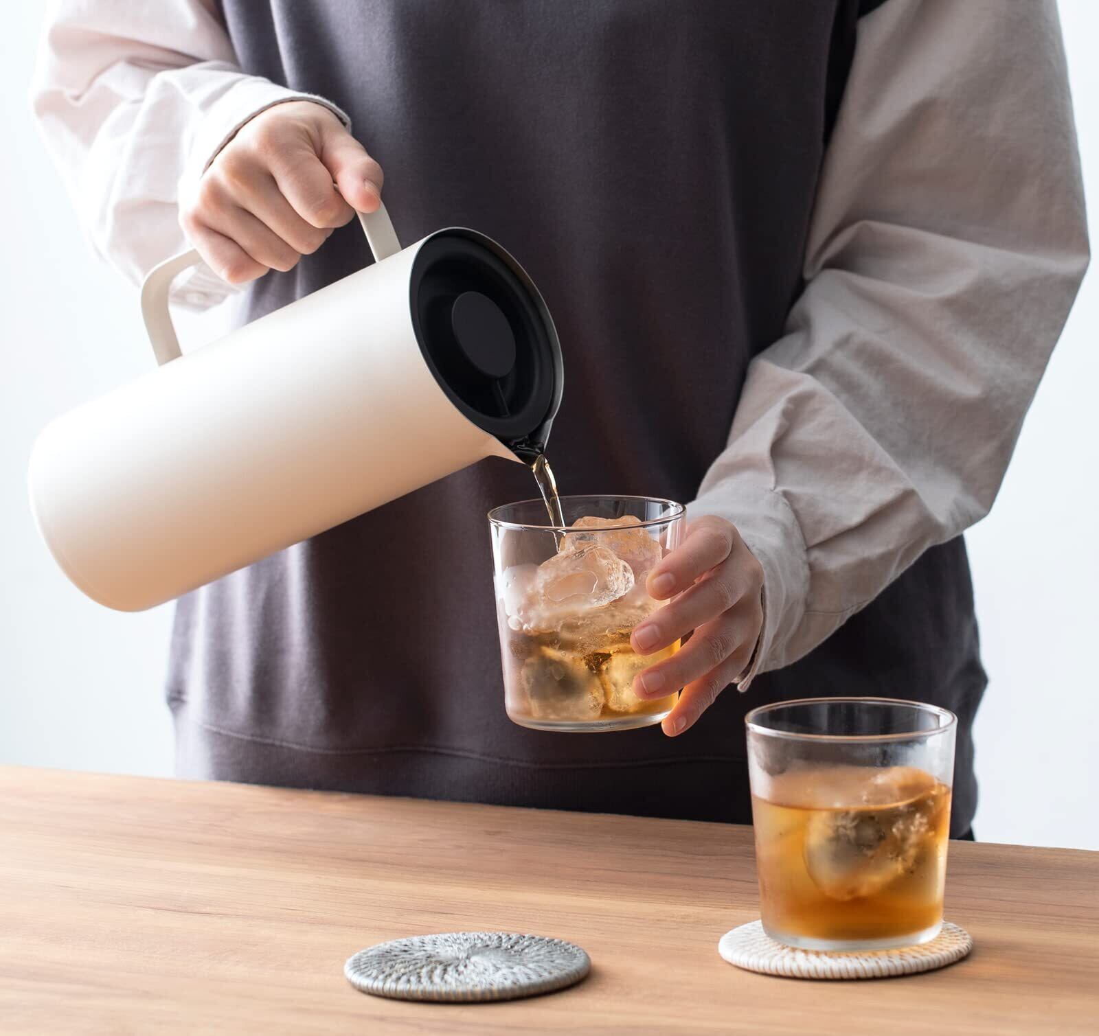 真空二重構造で飲み頃温度をしっかりキープ。・リビングやデスクの上に置きやすいスリムでシンプルなデザイン。・約7.6cmの広口タイプで飲み物が入れやすく、お手入れがしやすい構造。・部品点数が少ないのでお手入れも簡単。