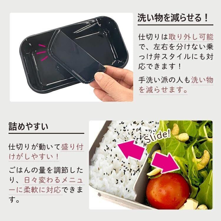 4点ロックで汁漏れを防ぐ。パッキン取り外し不要でお手入れ簡単。抗菌加工、電子レンジ対応、冷凍保存可、食洗器OK