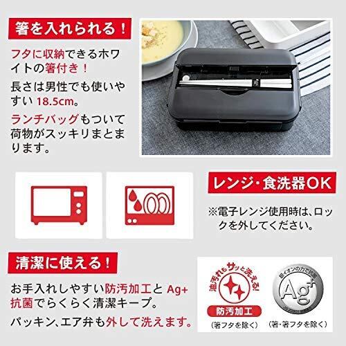 フタに収納できるホワイトの箸付き(18.5cm)ランチバッグもついていて荷物がスッキリまとまります