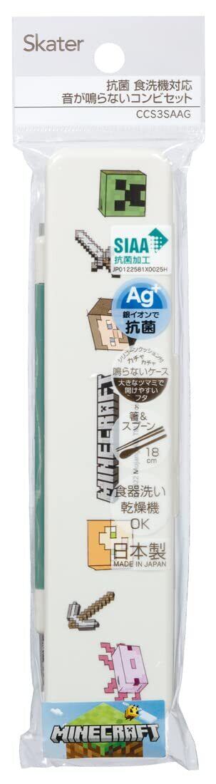 スケーター(Skater) 箸 スプーンセット 弁当 大人用 抗菌 コンビセット 18cm カチャカチャ鳴らない 日本製 マインクラフト エクスプローラー モア Minecraft CCS3SAAG-A